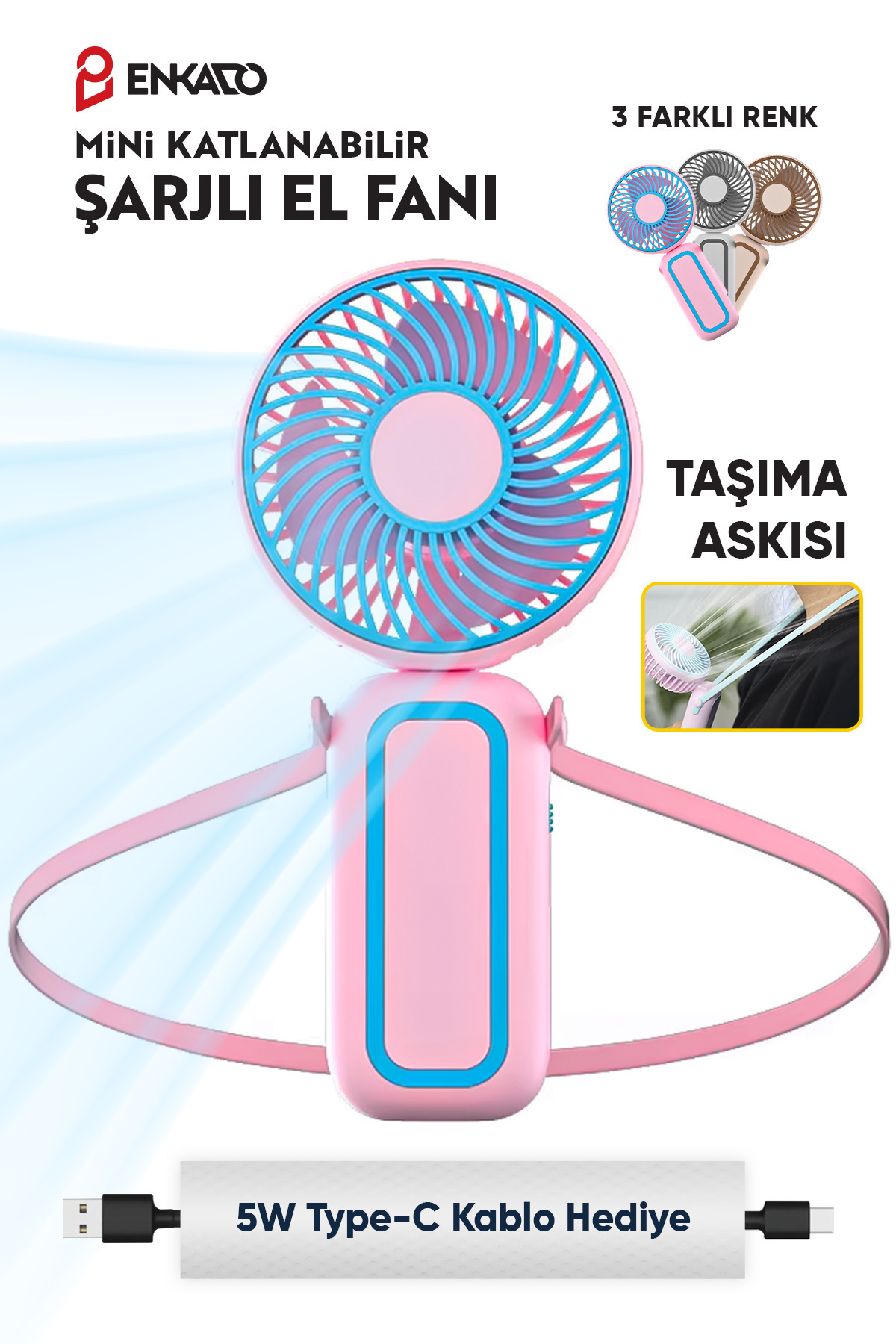 Katlanabilir Taşınabilir Şarjlı Sessiz Mini El Fanı Askılı Serinletici Güçlü El Fanı Vantilatör