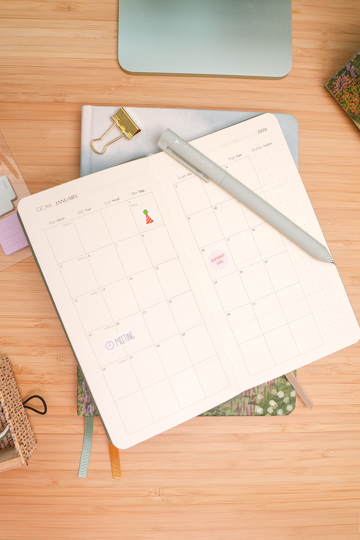 • Matt Notebook 2026 Yılı Haftalık Keten Cep Ajandası 12 Aylık