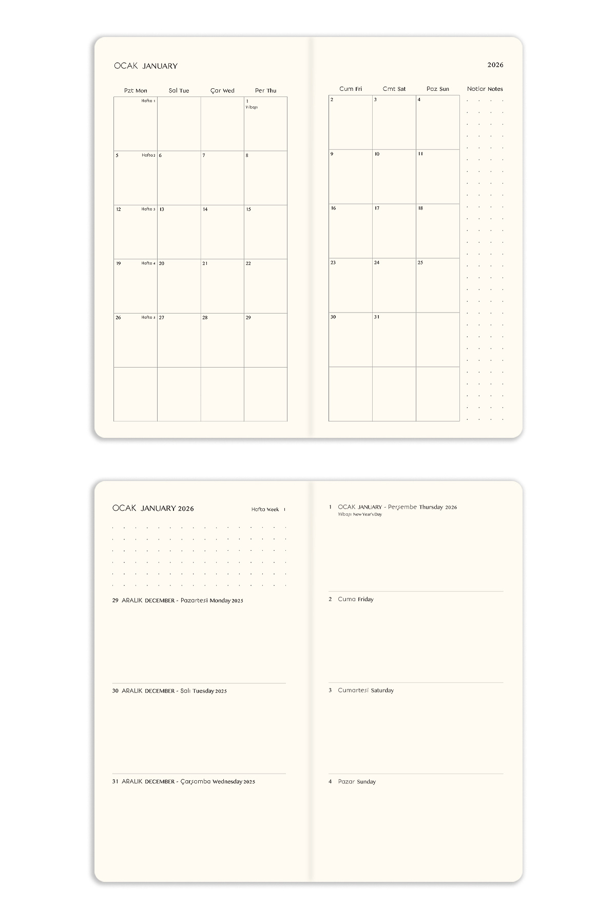 Matt Notebook 2026 Yılı Haftalık Keten Cep Ajandası 12 Aylık