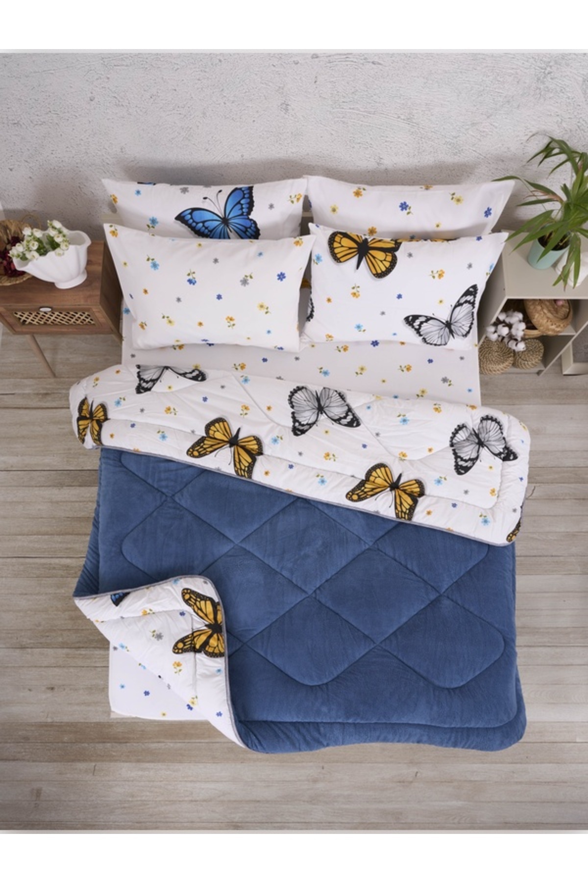 Yumuşacık dokusu ve kullanışlı içeriği ile yatak odanıza yepyeni bir hava katacak! Ürün İçeriği: •1 Adet Yorgan – 195 x 215 cm •1 Adet Battal Lastikli Çarşaf – 180 x 200 cm •4 Adet Yastık Kılıfı – 50 x 70 cm (2 adet desenli, 2 adet düz) 🌟 Özellikler: •Welsoft kumaş yapısıyla ultra yumuşak ve pofidik doku •Isıyı dengeler, sıcak tutar •Hafif yapısıyla kolay kullanım •Kolay yıkanabilir ve çabuk kurur •Şık ve sade tasarımıyla yatak odanıza zarafet katar •Pamuklu tarafını yatak örtüsü olarak da kullanabilirsiniz, böylece hem şıklık hem de pratiklik kazanırsınız.