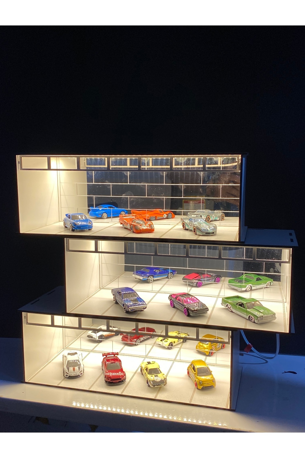 3 Katlı Işıklı Oyuncak Araba Sergileme Standı – Gün Işığı LED’li Oyuncak araba koleksiyonlarınızı şık ve düzenli bir şekilde sergilemek için tasarlanmış 3 katlı ışıklı stand ile koleksiyonunuza fark katın! 🔹 Modern ve Şık Tasarım: Üç katlı yapısı sayesinde birçok aracı bir arada sergileyebilir, odanıza estetik bir görünüm kazandırabilirsiniz.