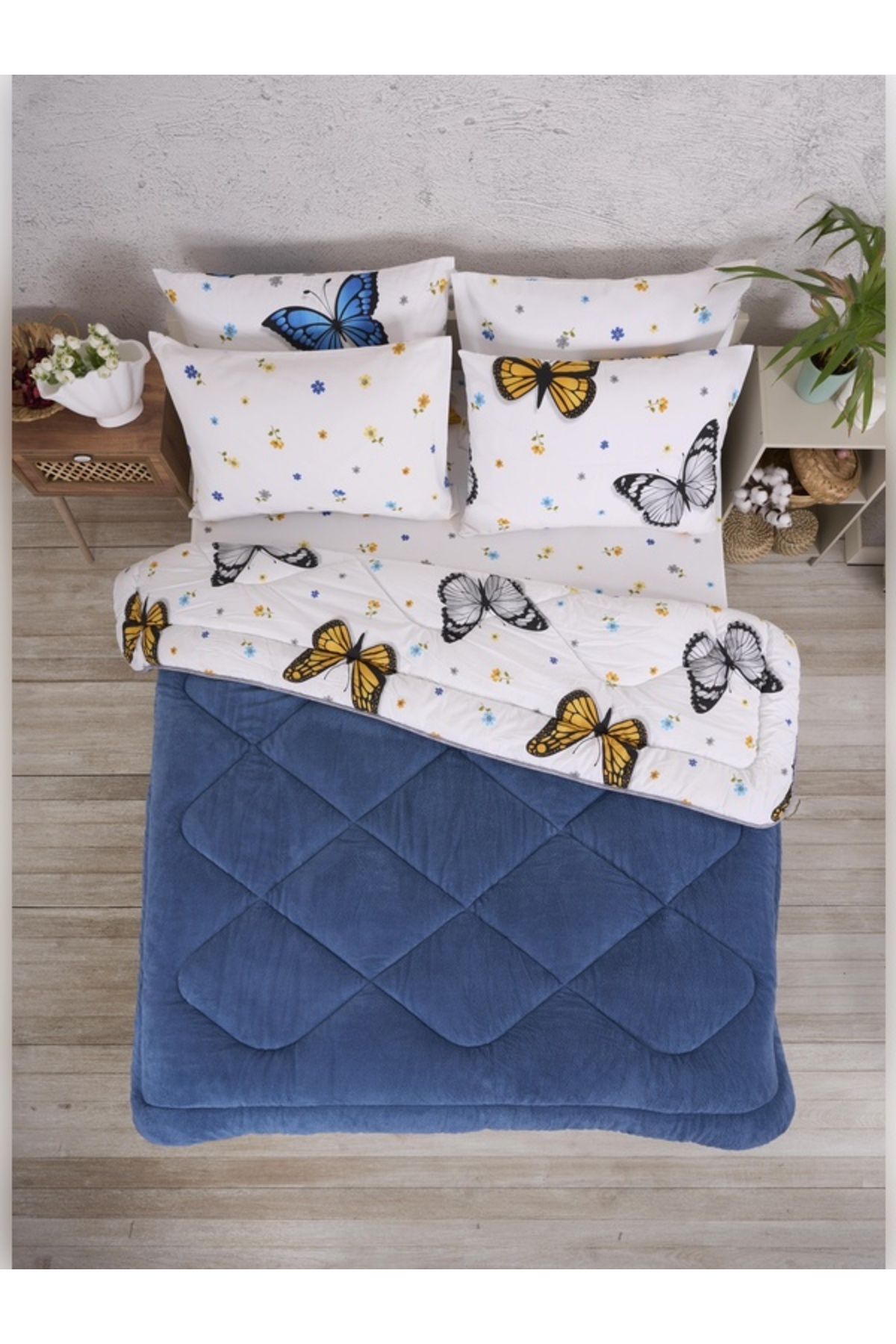 Çift Kişilik Welsoft Uyku Seti Çift Taraflı Wellsoft Pofuduk Polar Yorgan ve Battal Lastikli Çarşaf