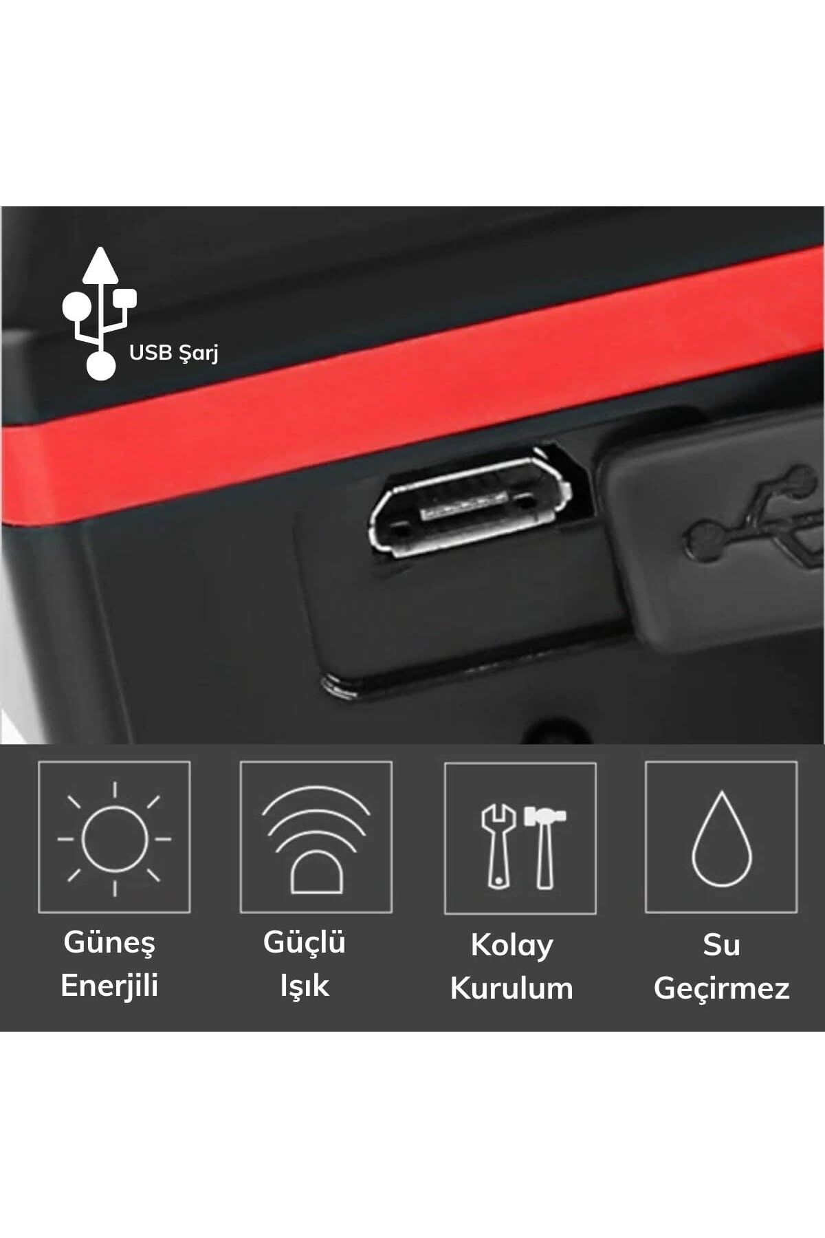 Solar USB Şarjlı Bisiklet Feneri | Su Geçirmez Kornalı LED Işık | 4 Modlu Far Lambası