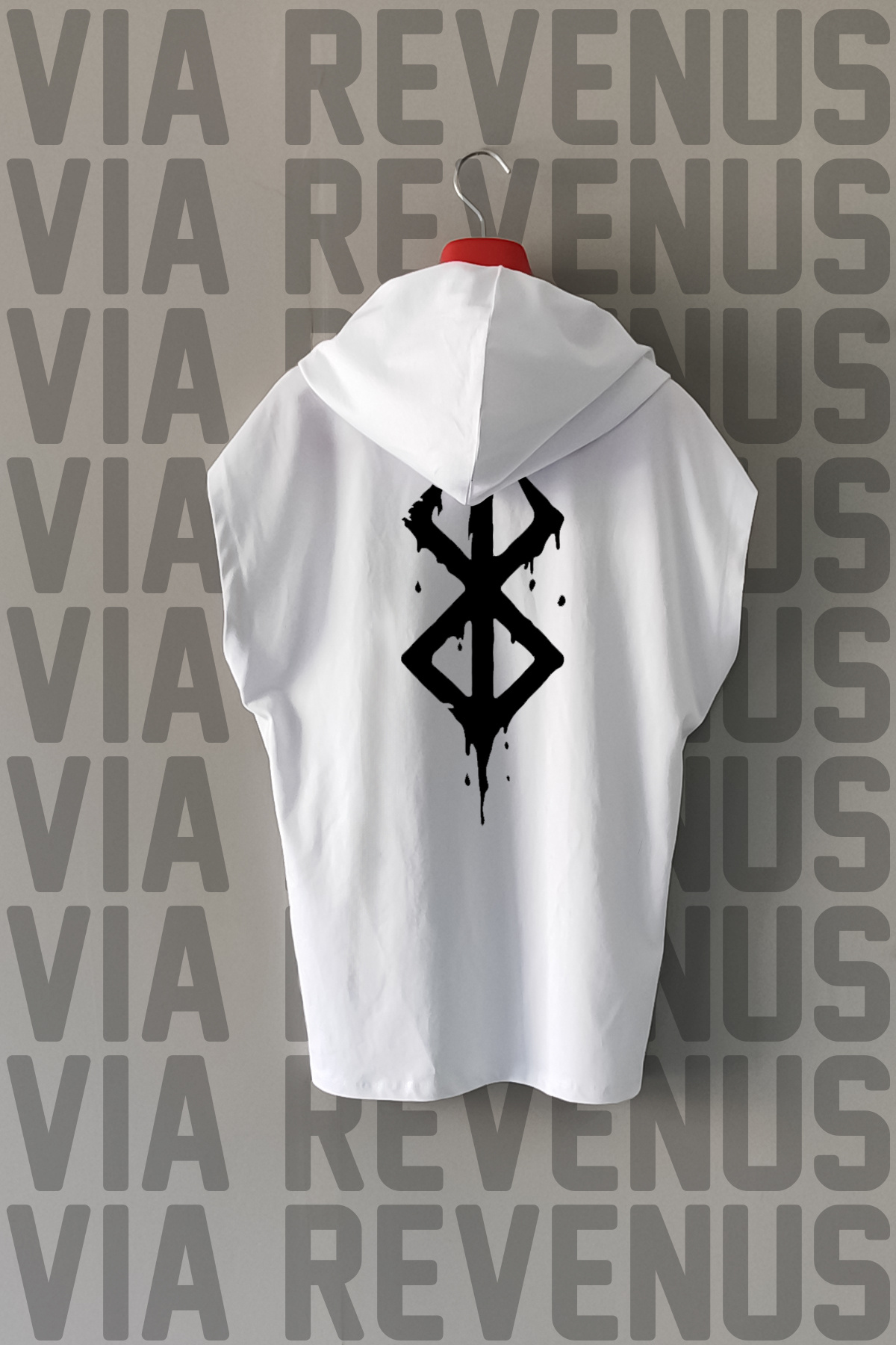 Berserk Ön ve Arka Baskılı Sıfır Kollu Kapüşonlu %100 Pamuk Spor Tshirt