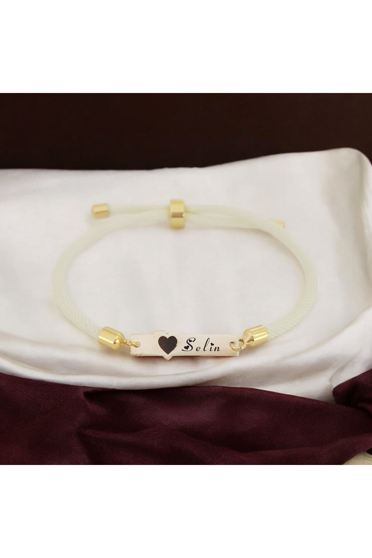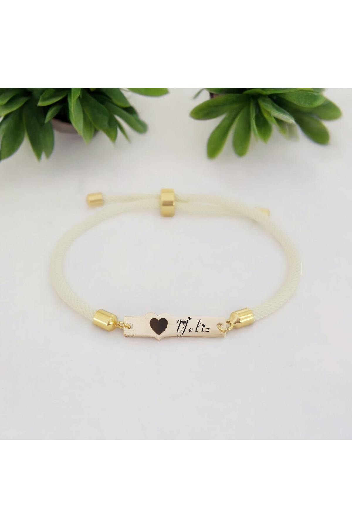 ,,,,,,,,, Örgü İp Kısmı: İpek İp ,,,,,,,,, Tasarım: Dikdörtgen detaylı kalp figürlü ve beyaz örgü ipli ,,,,,,,,, Kişiselleştirme: Plaka üzerine kişiye özel isim, harf ve sembol yazılabilir ,,,,,,,,, Hediye Seçeneği: Özel tasarımıyla kişiye özel, anlamlı bir hediye ,,,,,,,,, Kullanım Alanı: Günlük kullanım ve özel günler için uygundur ,,,,,,,,, Üretim: El yapımı olup özenle tasarlanmıştır ,,,,,,,,, Cinsiyet: Kadınlar için uygundur ,,,,,,,,, Kapanış Tipi: Ayarlanabilir asansörlü kilit mekanizması ,,,,,,,,, Ağırlık: Dayanıklı ve konforlu kullanım için idealdir ,,,,,,,,, Bilekliğin Uzunluk Ölçüsü: Plakalı 24 cm, Plakasız 21 cm — Önemli Not: Bilekliğin uzunluk ölçüsü, el yapımı olması nedeniyle yaklaşık ±1 cm toleransa sahiptir ve kolayca ayarlanabilir.