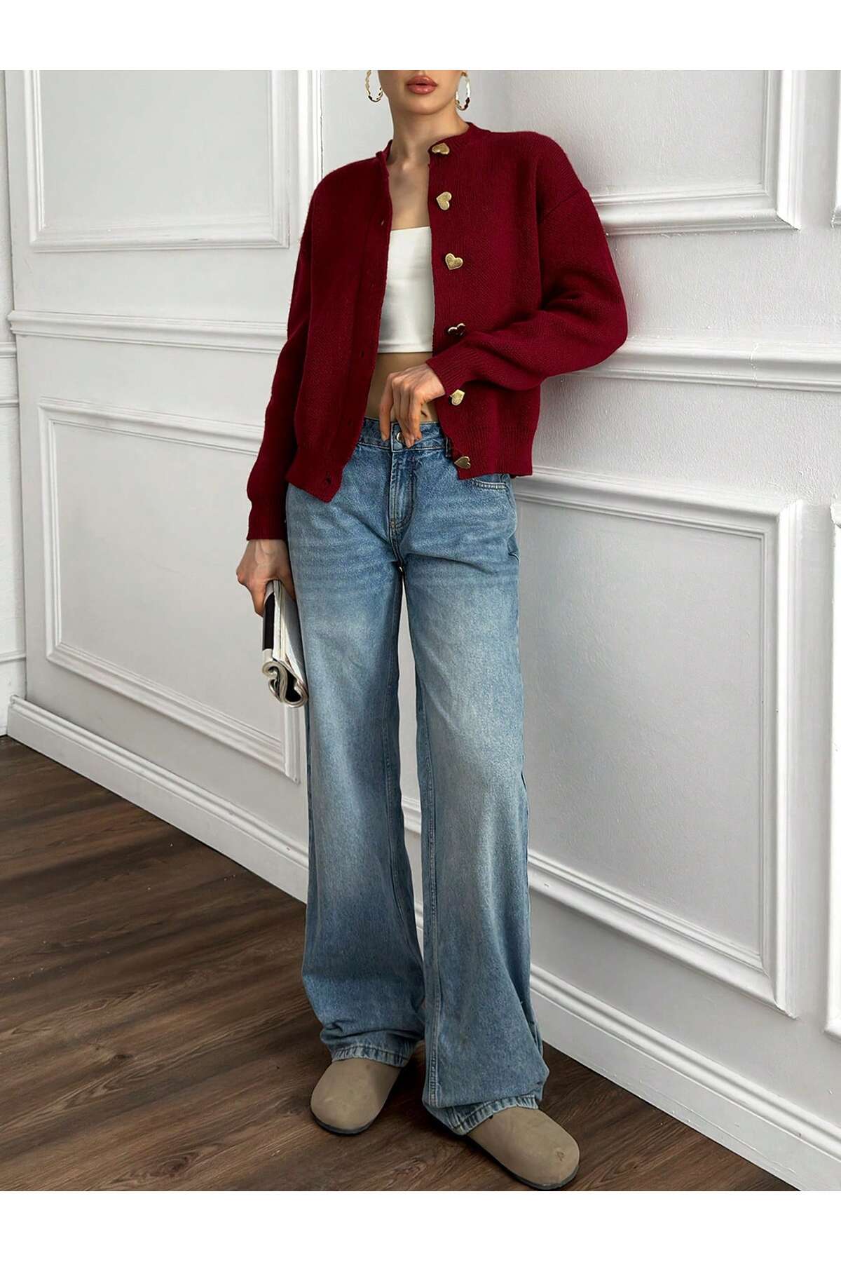 - Rahat ve şık bir görünüm sunan düğmeli hırka, günlük kullanım için idealdir.