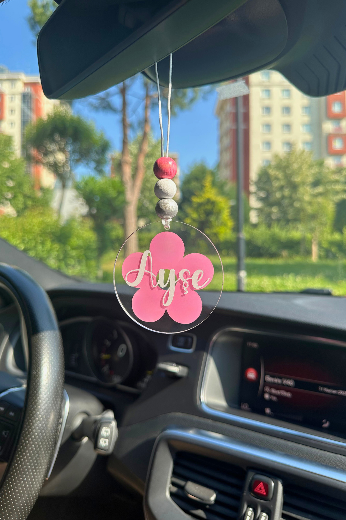 Pembe Papatya Tasarımlı Kişiye Özel Dikiz Aynası Süsü Hediye Kutulu Araba Süsü