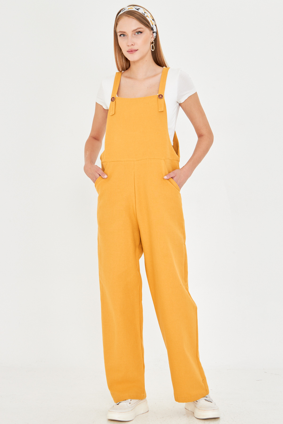 Kadın Haki Cepli Geniş Paçalı Bahçıvan Tulum ARM-25Y001043