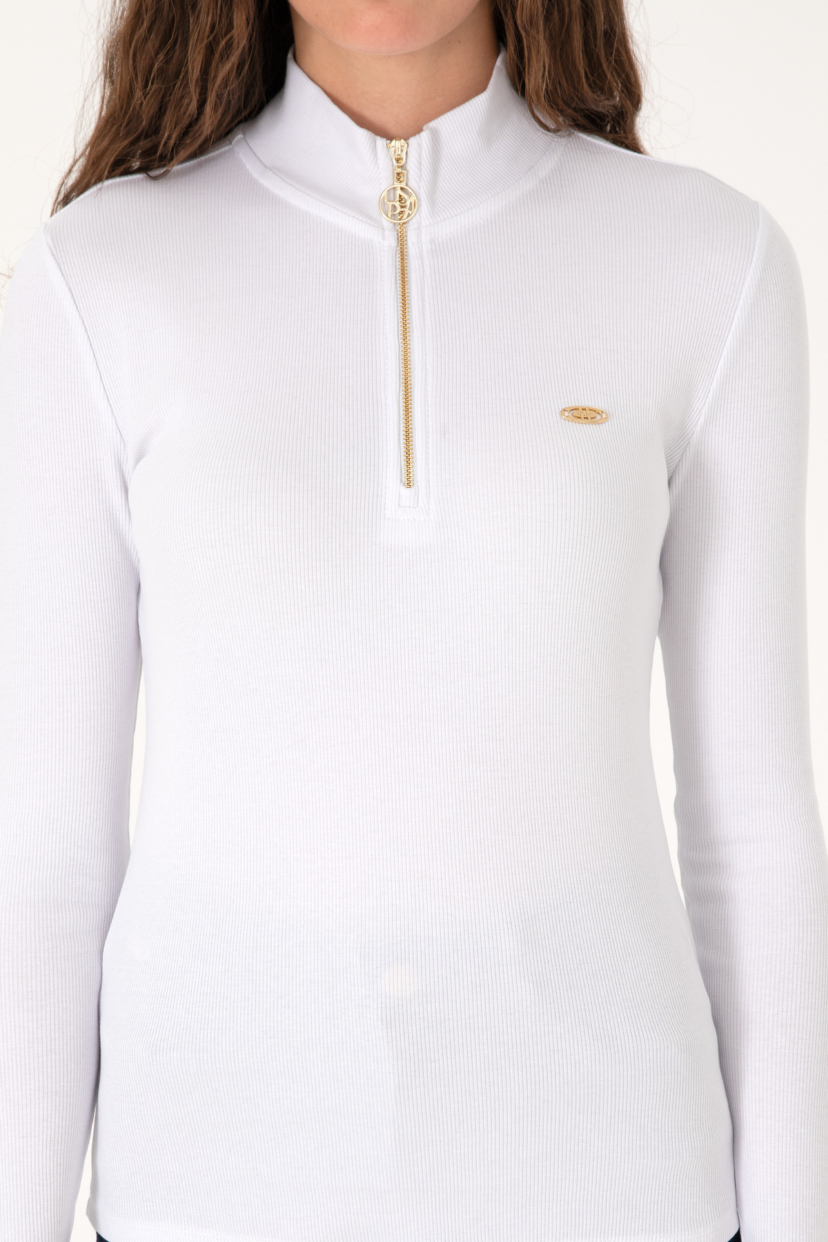 Kadın Beyaz Fermuarlı Dik Yaka Sweatshirt 50313564-VR013