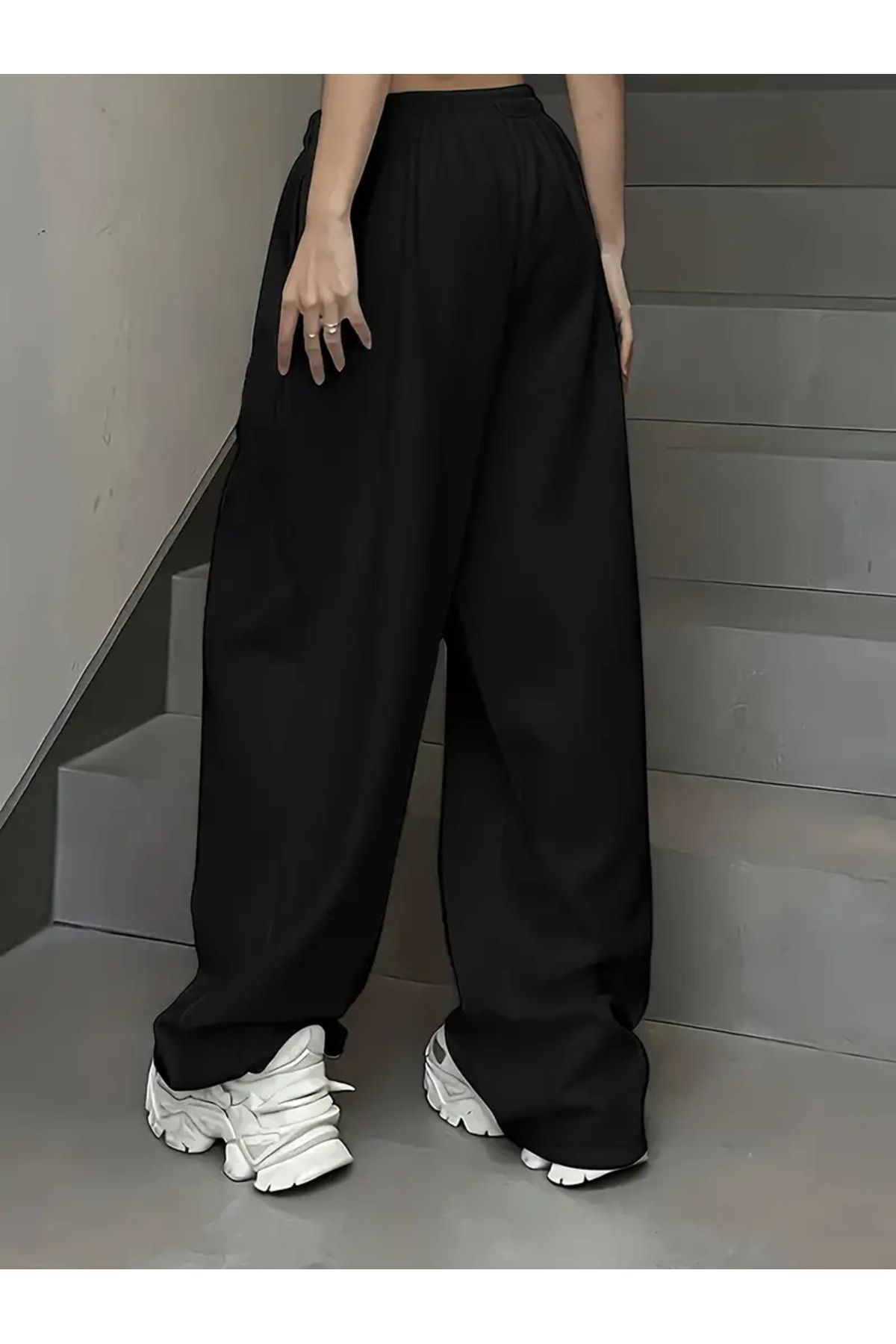 - Rahat kesimi ile günlük kullanım için ideal, siyah bol paça eşofman altı.