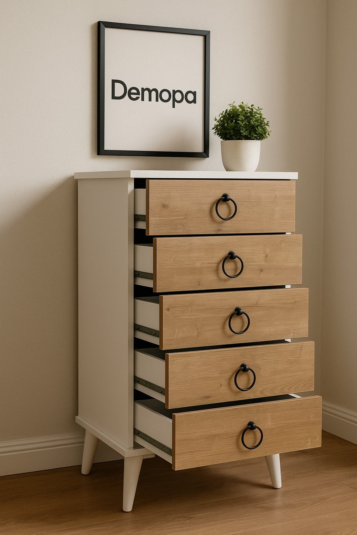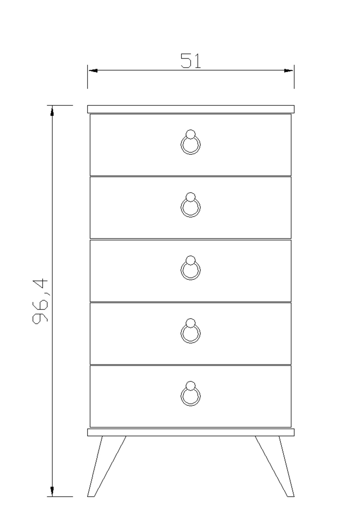 -DMP-K51BM5S - 5 Çekmeceli KOMODİN / ŞİFONYER - Retro tasarımıyla dikkat çeken DMP-105MS komodin, evinizin dekorasyonuna nostaljik bir dokunuş katıyor.
