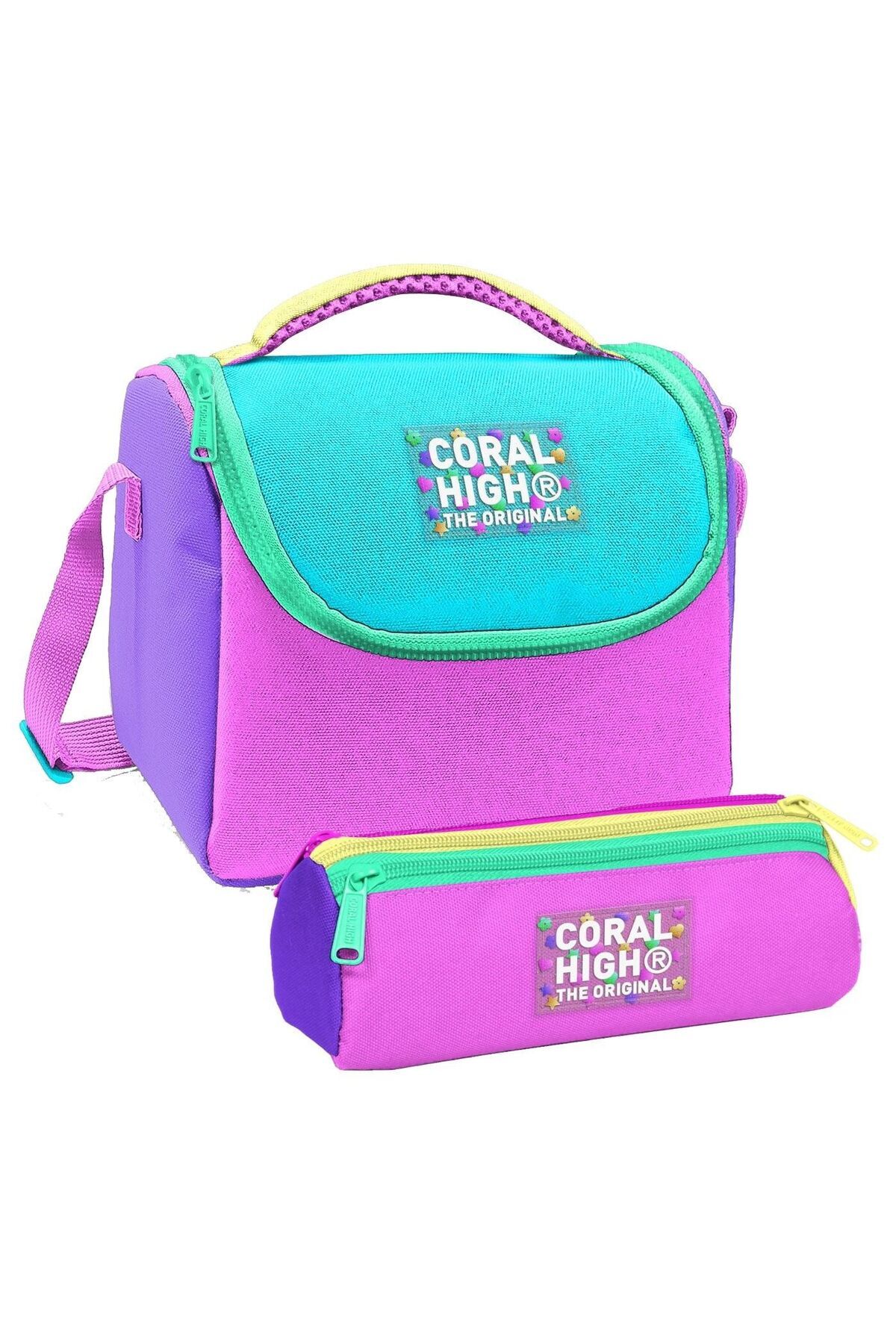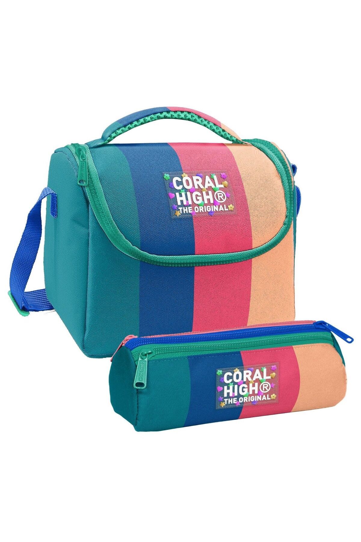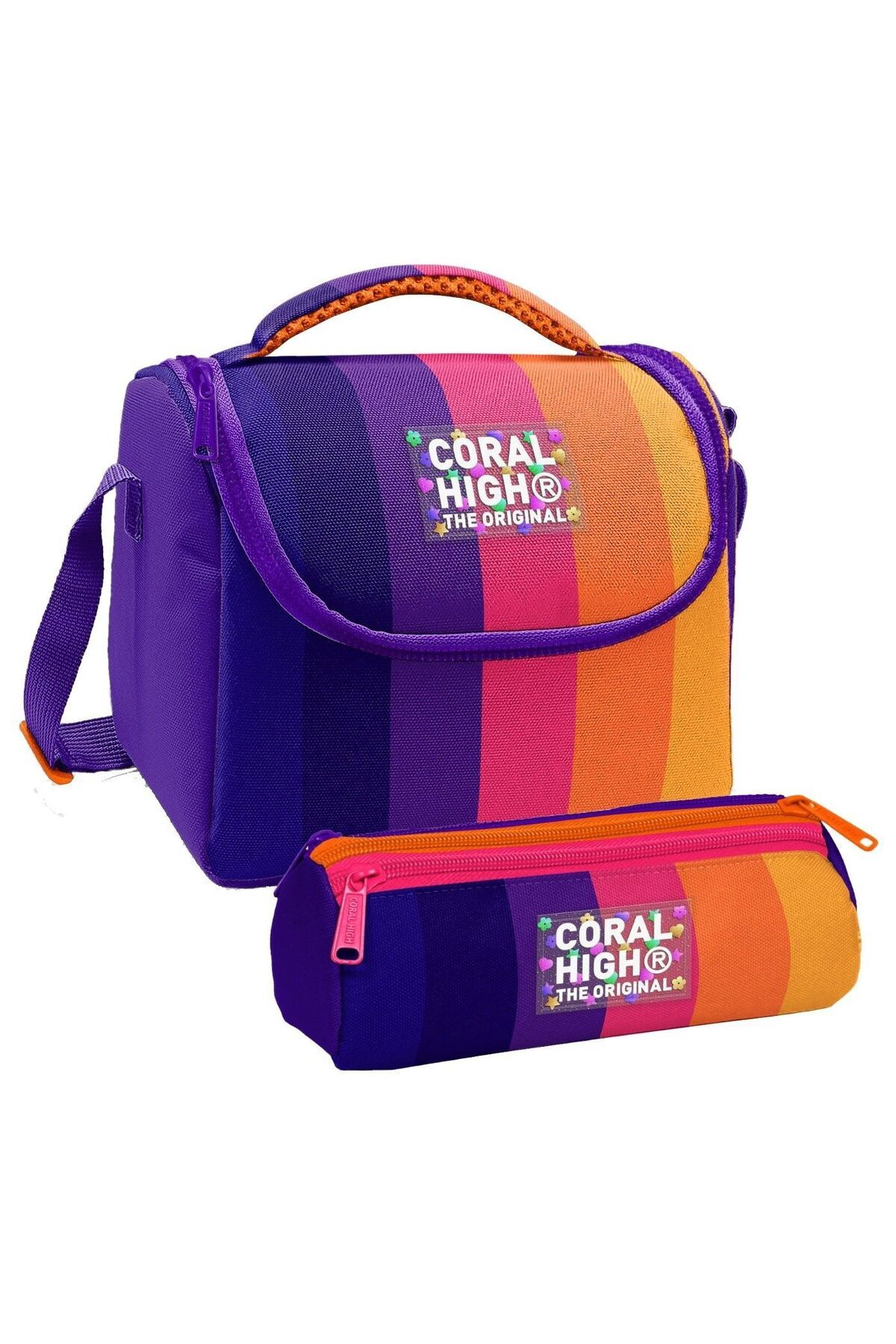 Coral High Thermo Beslenme Çantası ve Üç Bölmeli Kalem Çantası SetiÇocuğunuzun okul ihtiyaçları için mükemmel bir ikili! Aynı şık tasarıma sahip ısı yalıtımlı beslenme çantası ve üç bölmeli kalem çantası, bu setle bir arada.