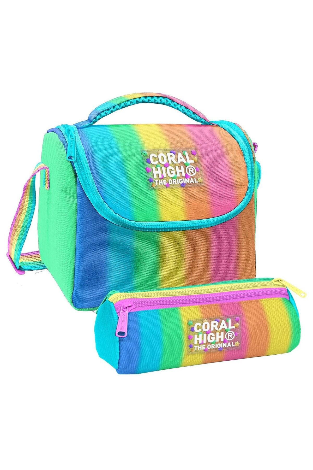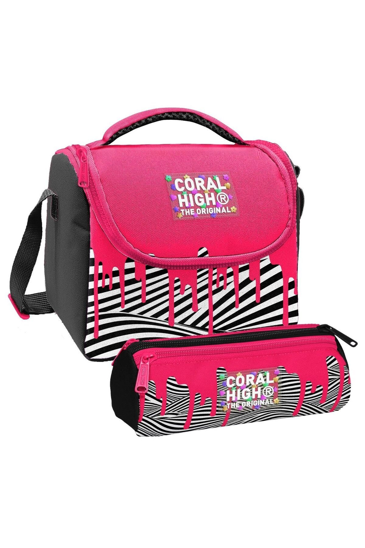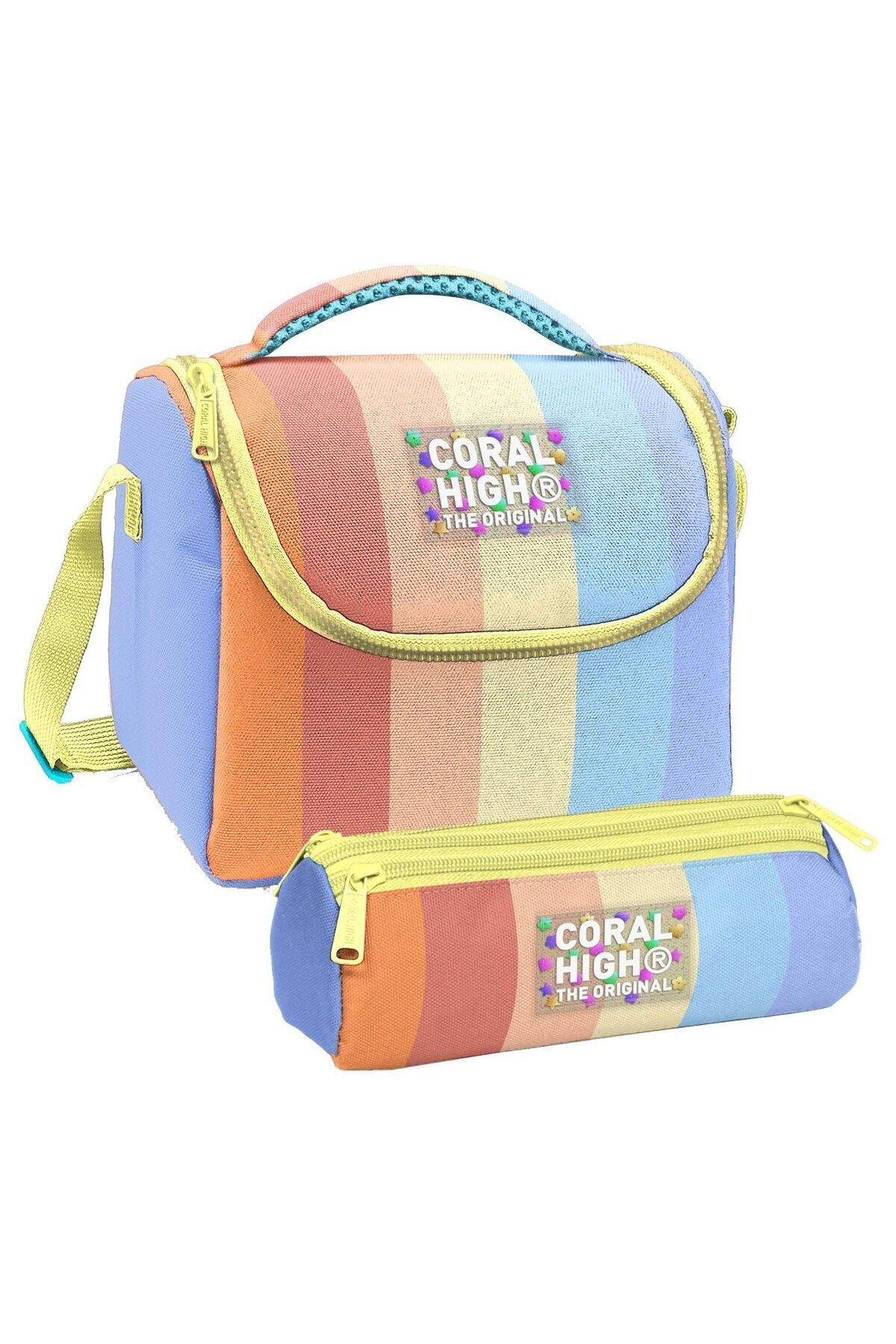 Coral High Thermo Beslenme Çantası ve Üç Bölmeli Kalem Çantası SetiÇocuğunuzun okul ihtiyaçları için mükemmel bir ikili! Aynı şık tasarıma sahip ısı yalıtımlı beslenme çantası ve üç bölmeli kalem çantası, bu setle bir arada.