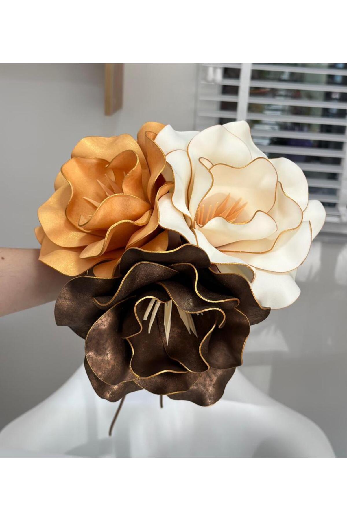 3'LÜ LATEKS EVA ÇİÇEK KAHVE-KREM-GOLD