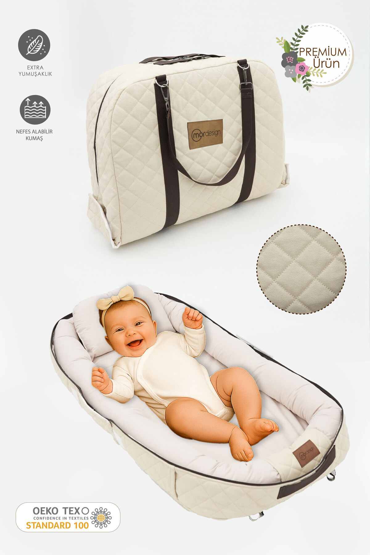 Bebek Yatağı, Babynest, 0-24 Ay Kullanım, Baş Yastıklı Kanvas Kılıf Deluxe+ Adorn Serisi