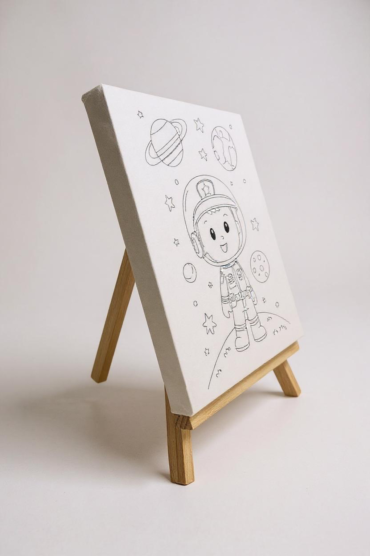 Çocuk Tuval Boyama Seti (ŞÖVALE, TUVAL, FIRÇA VE 6 RENK AKRİLİK BOYA SETİ) Hobi Seti, Mini Tuval