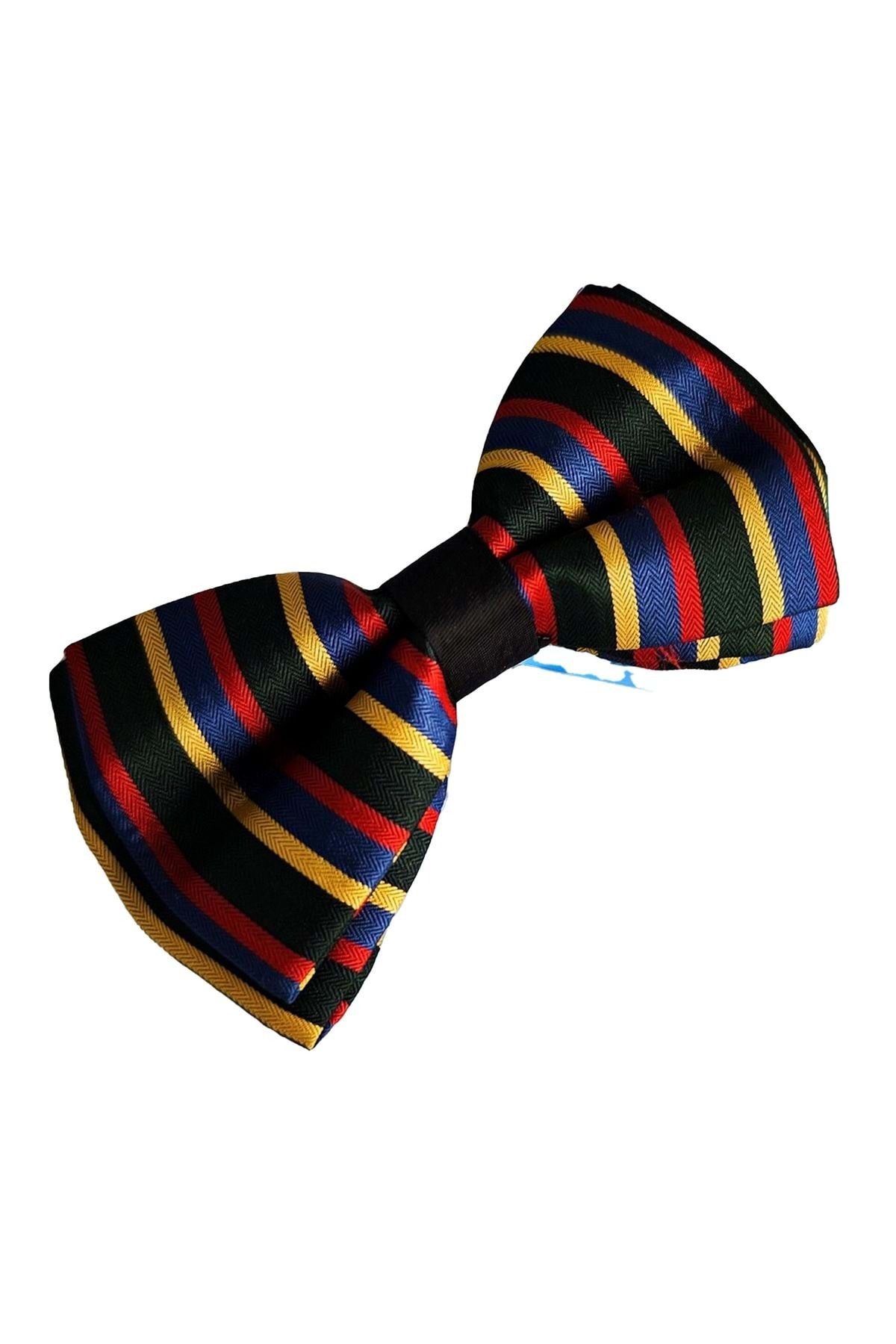 Siyah üzerine Kırmızı Sarı Mavi Çizgi El Yapımı Klasik Boyun Ayarlı Papyon