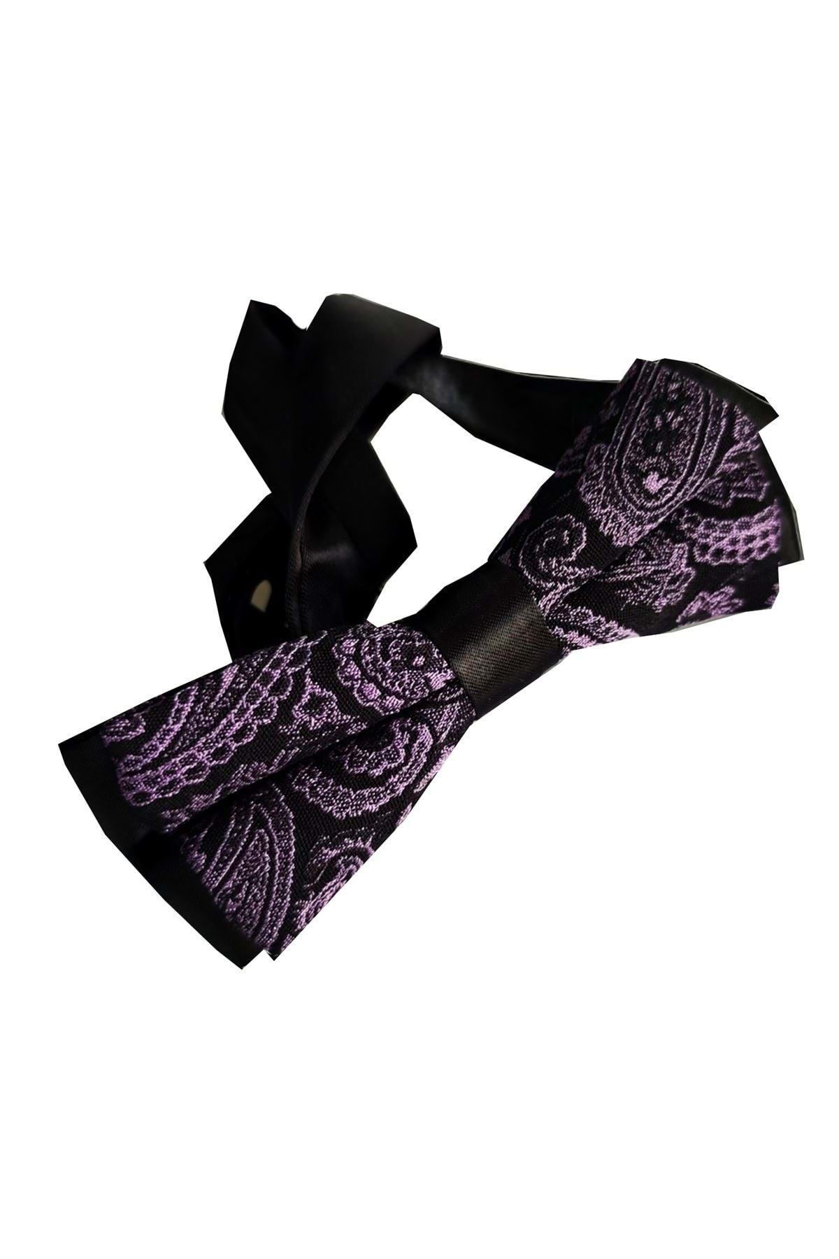 Mor Siyah Şal Desenli El Yapımı Klasik Boyun Ayarlı Papyon