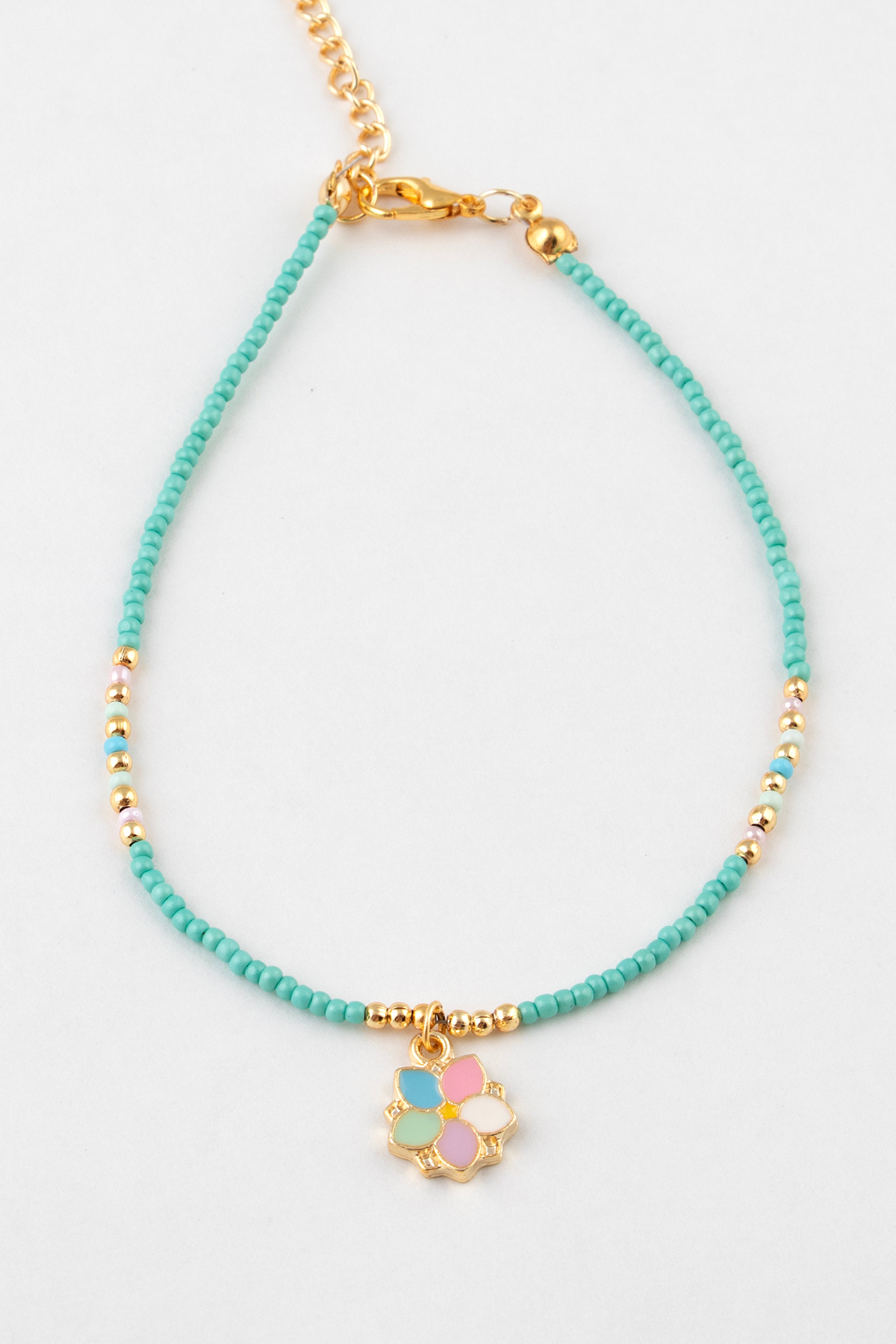 Çiçek Figürlü Mineli Boncuklu Halhal 009