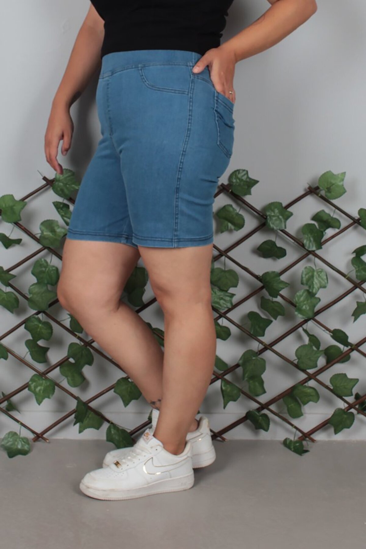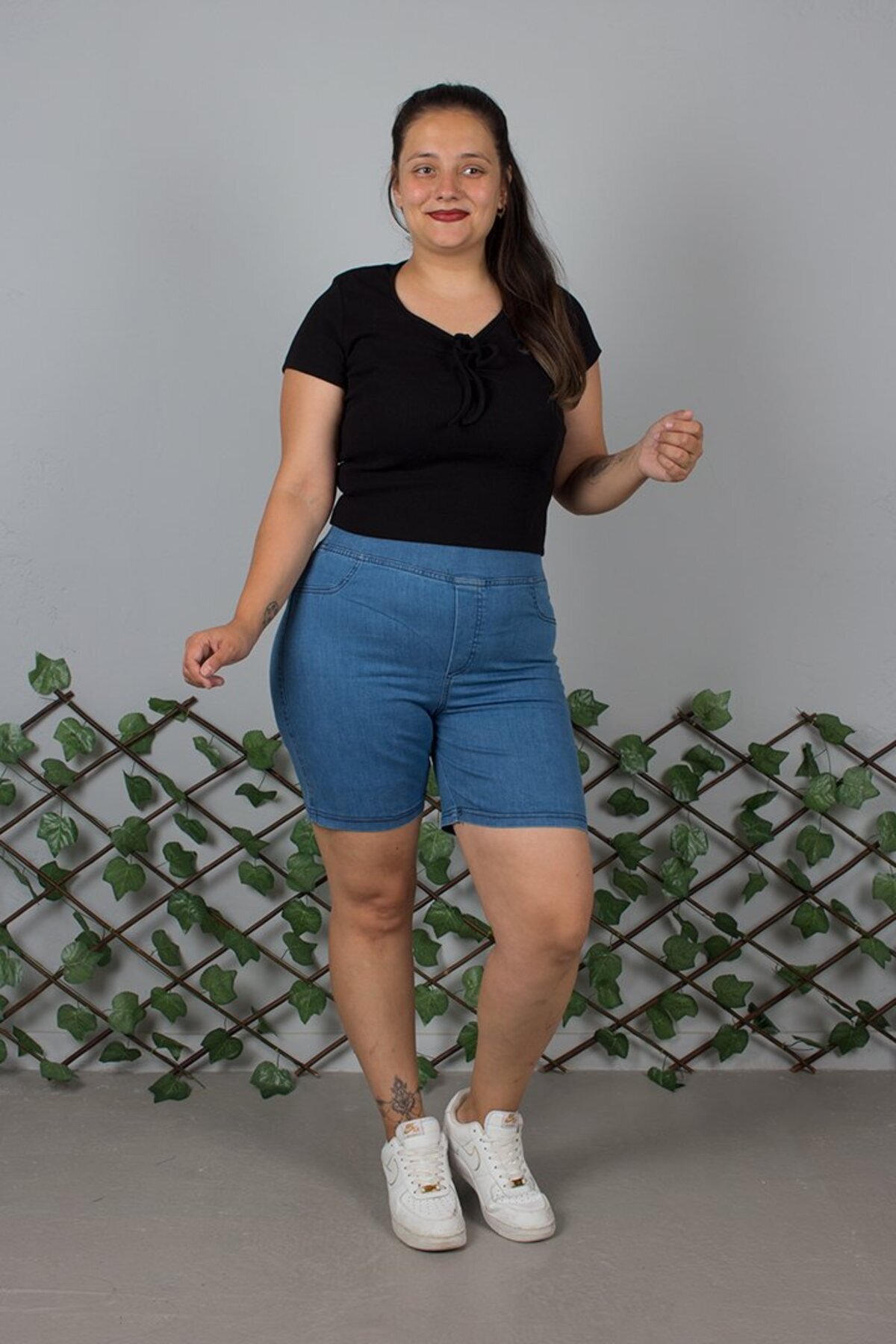 Büyük Beden Yüksek Bel Mavi Kot Şort – Rahat Kalıp, Şık ve Modern Tasarım