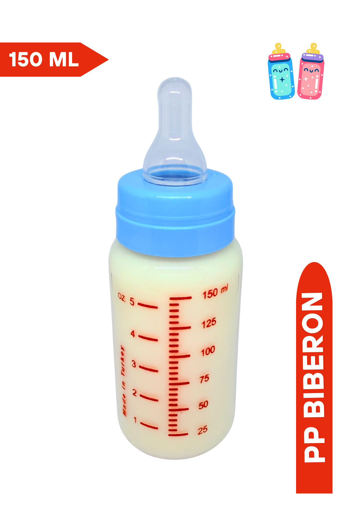 Klasik Silikon Uçlu PP Biberon, Mavi Rengi, 150 ml