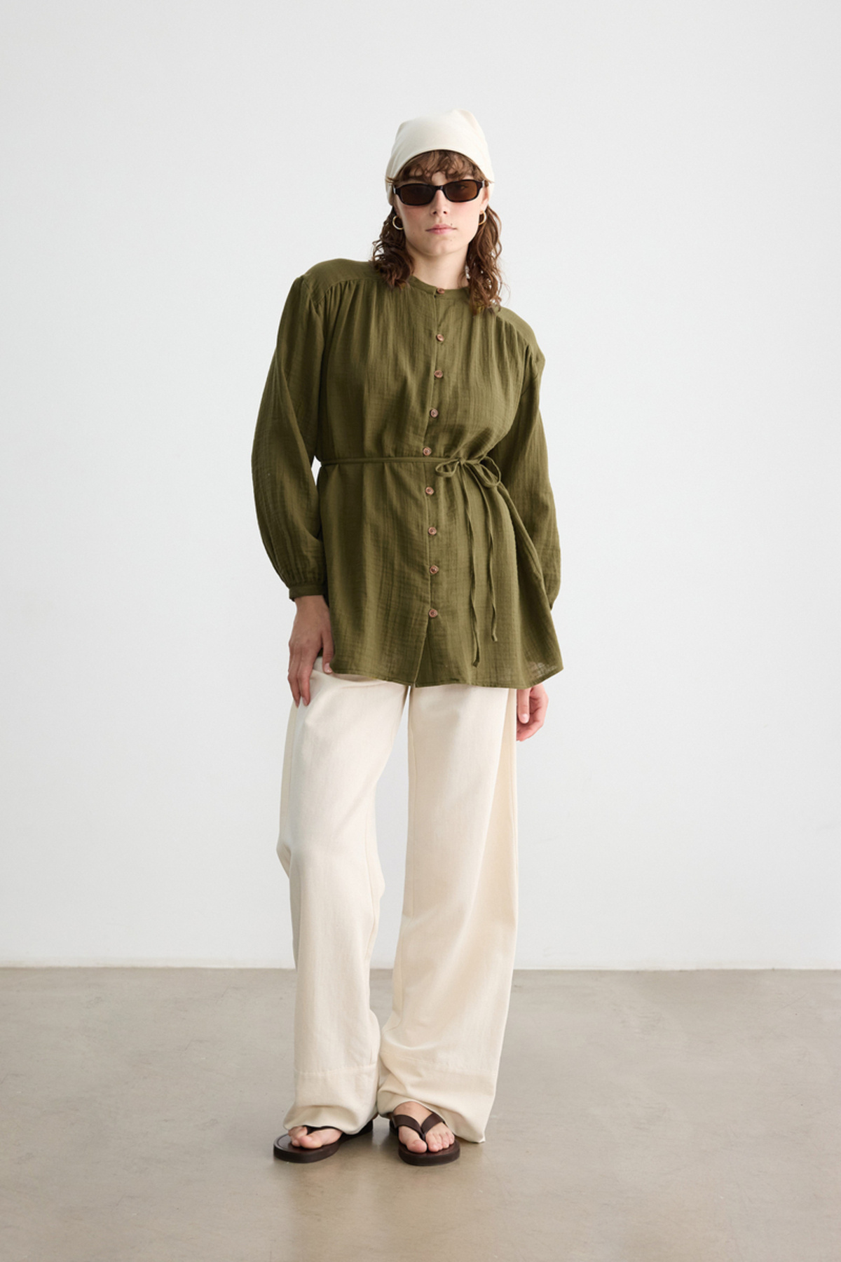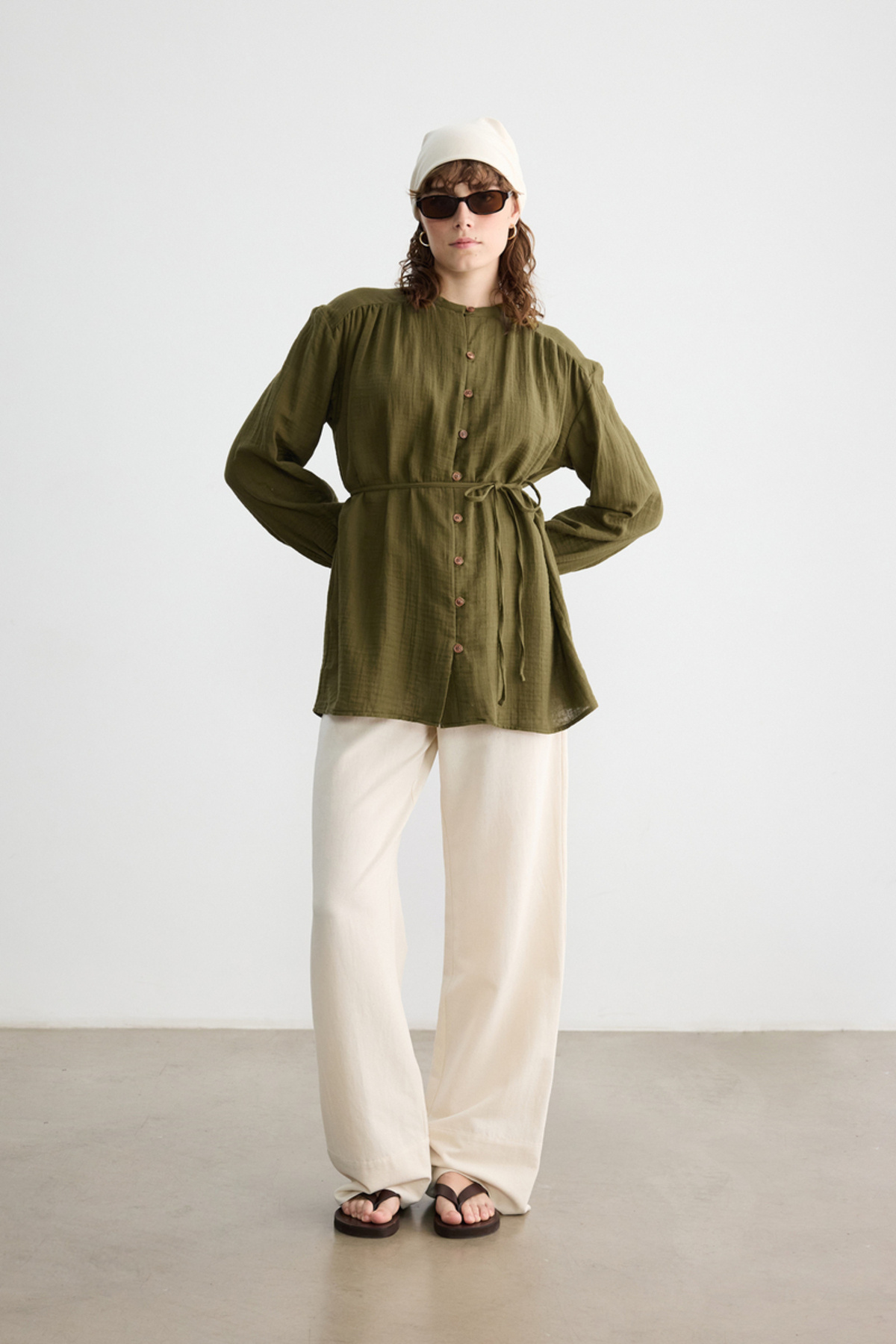 ÇİMEN AHŞAP DÜĞMELİ MÜSLİN GÖMLEK