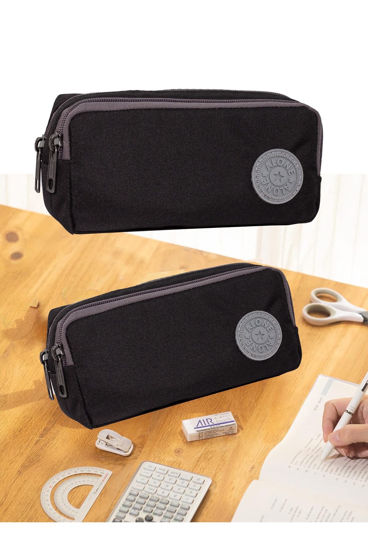 Çift Gözlü Okul Kalemlik Kalem Çantası-311 Siyah Gri