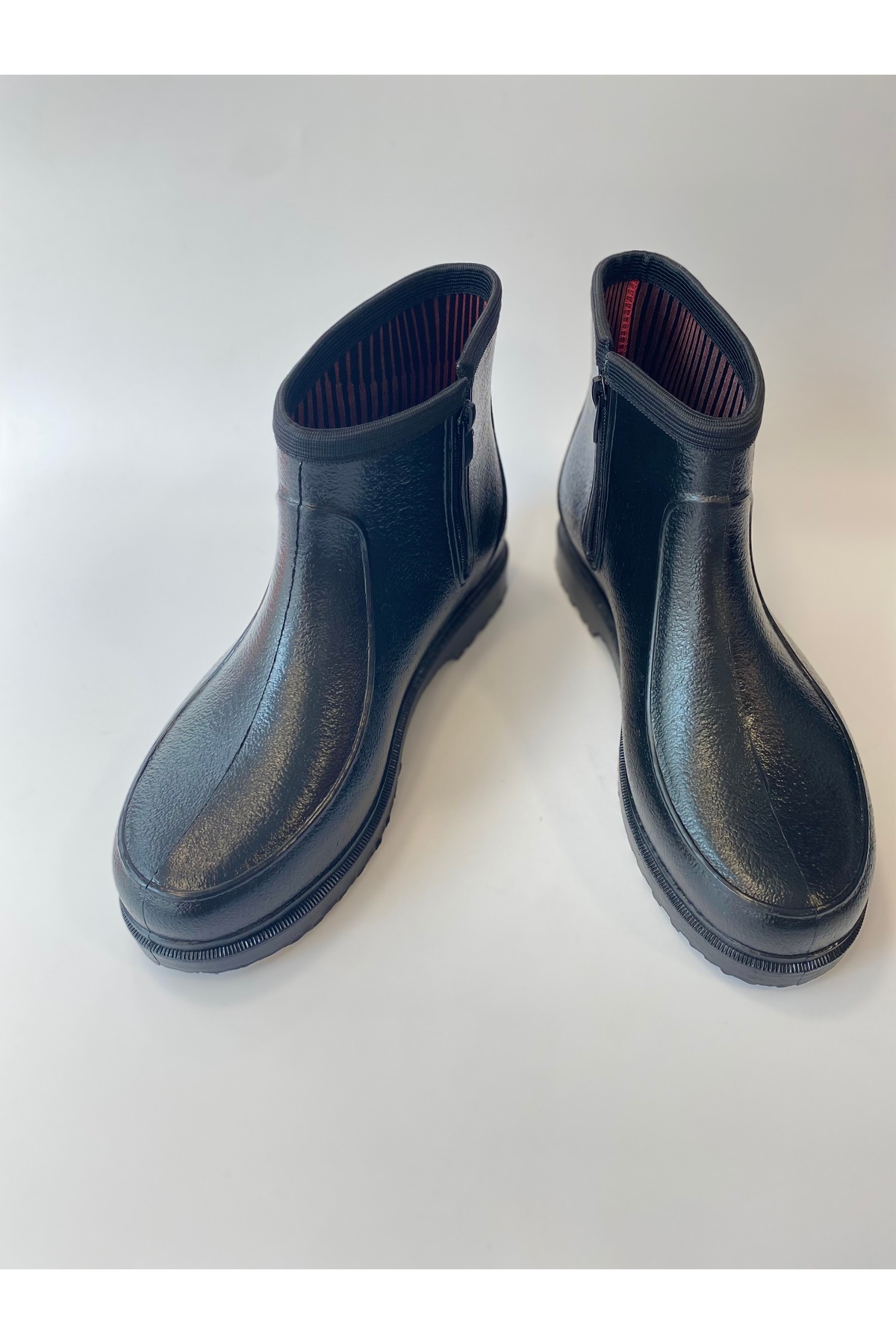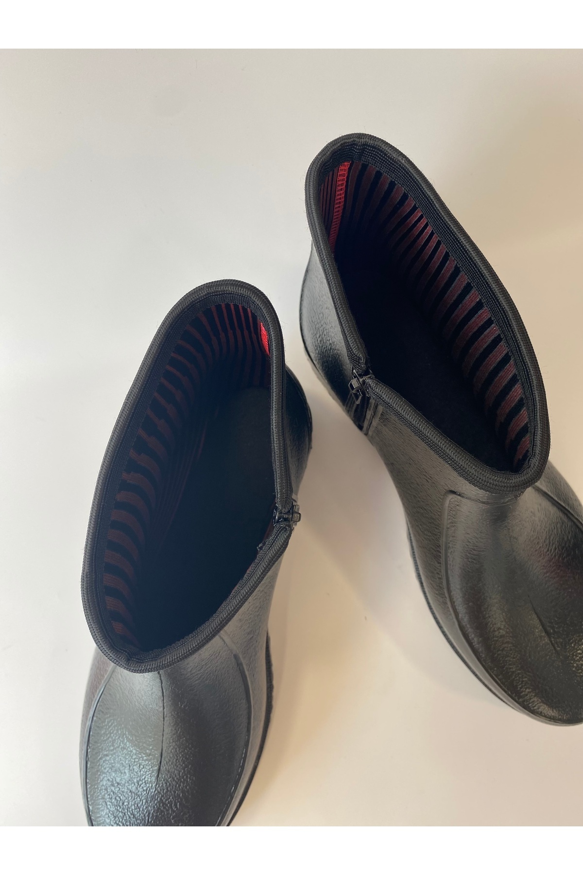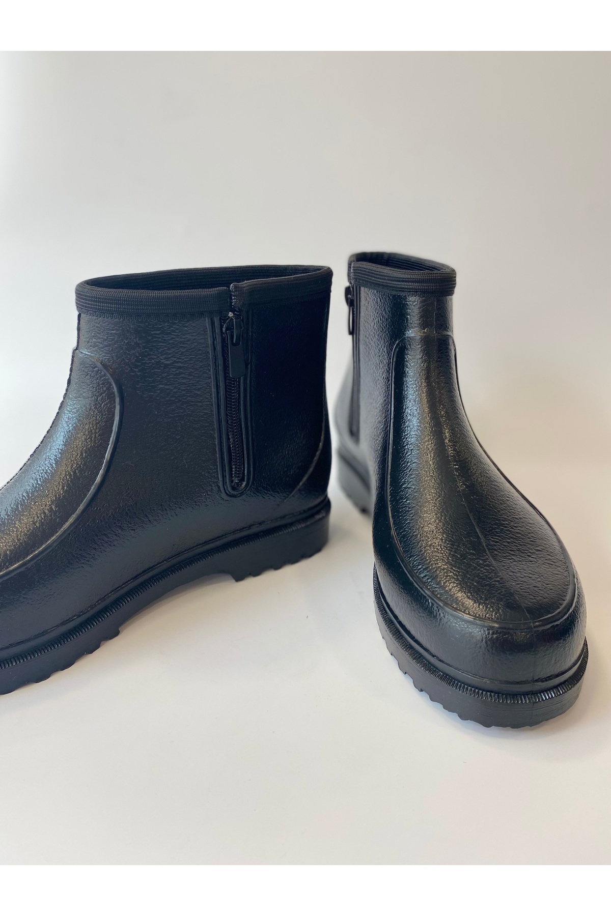 İçi Yünsüz Fermuarlı Su Geçirmez Iş Bağ Bahçe Yağmur Çizmesi - Lastik Çizme - Siyah 41-45 Numara Aralığı