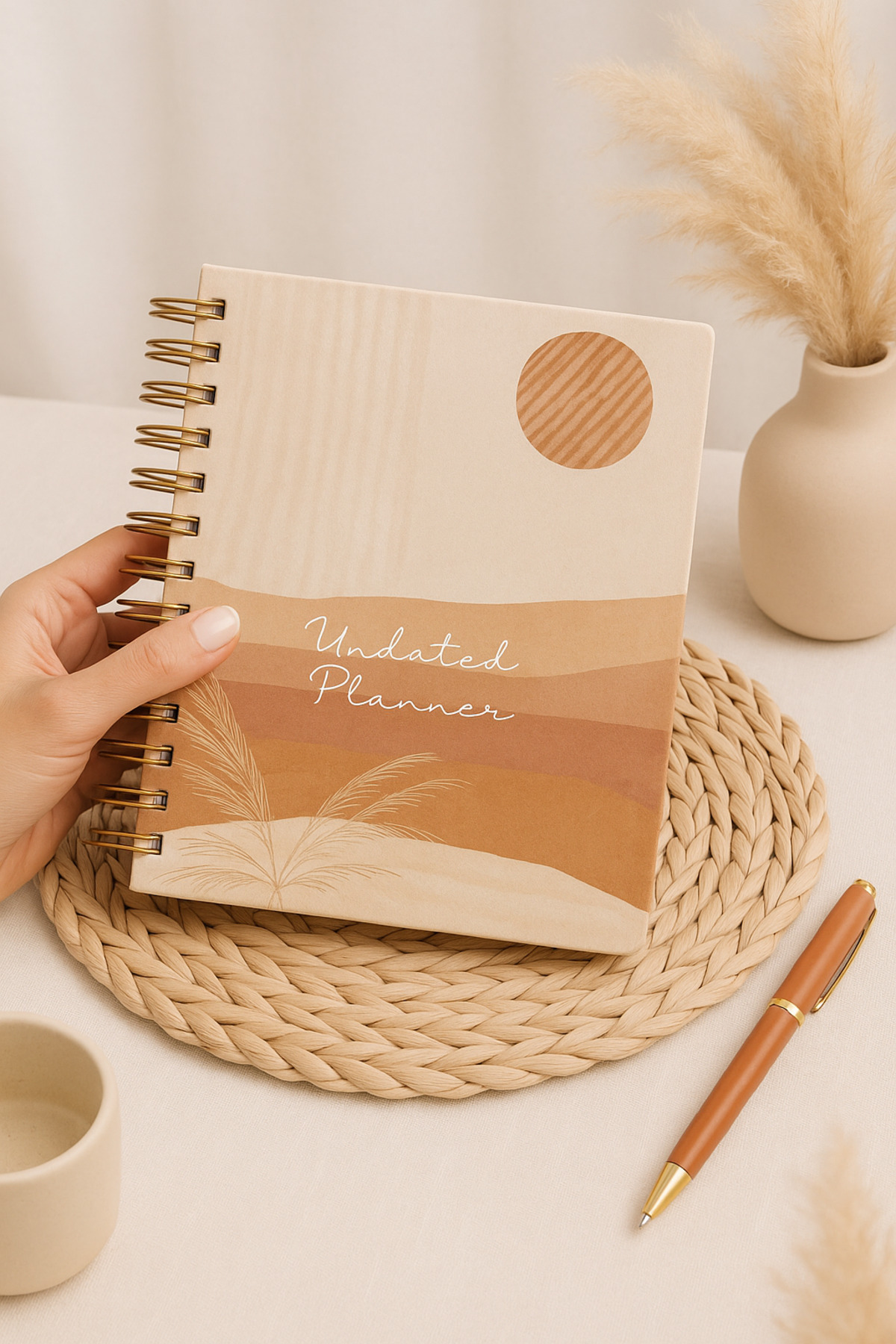 Süresiz Ajanda ile Planlarınıza şekil verin, hayallerinizi sayfalara dökün! Bohem e özel tasarımıyla bu süresiz ajanda, hem stil sahibi hem de kullanışlı.