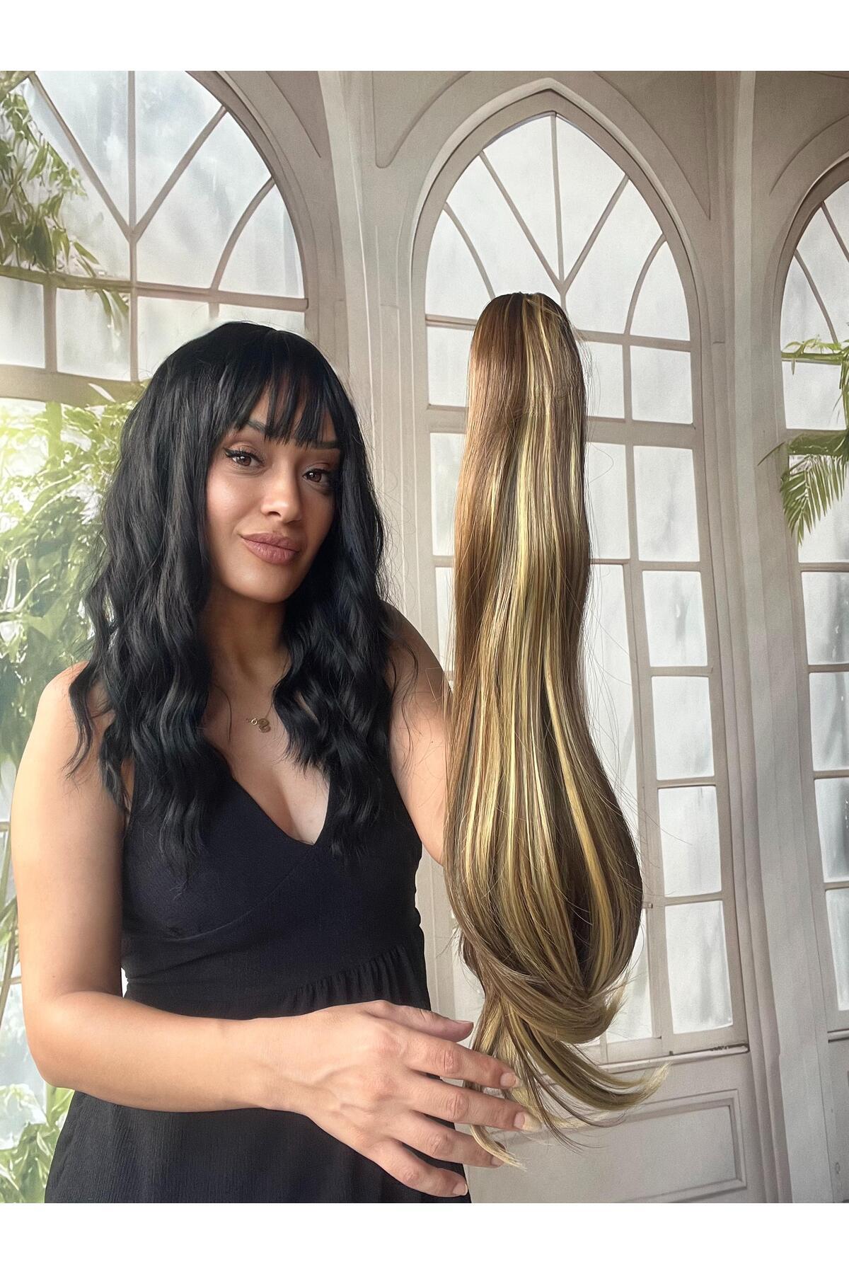 Gerçek saç dokusunda At kuyruğu Postiş Mandallı Tokalı Saç eklentisi
