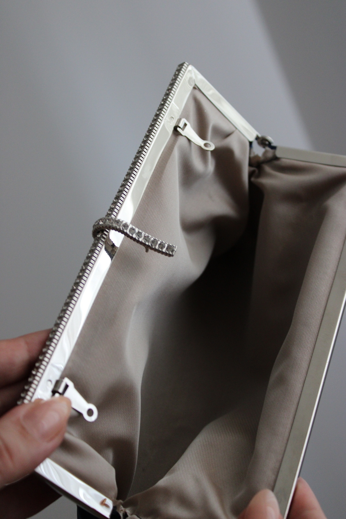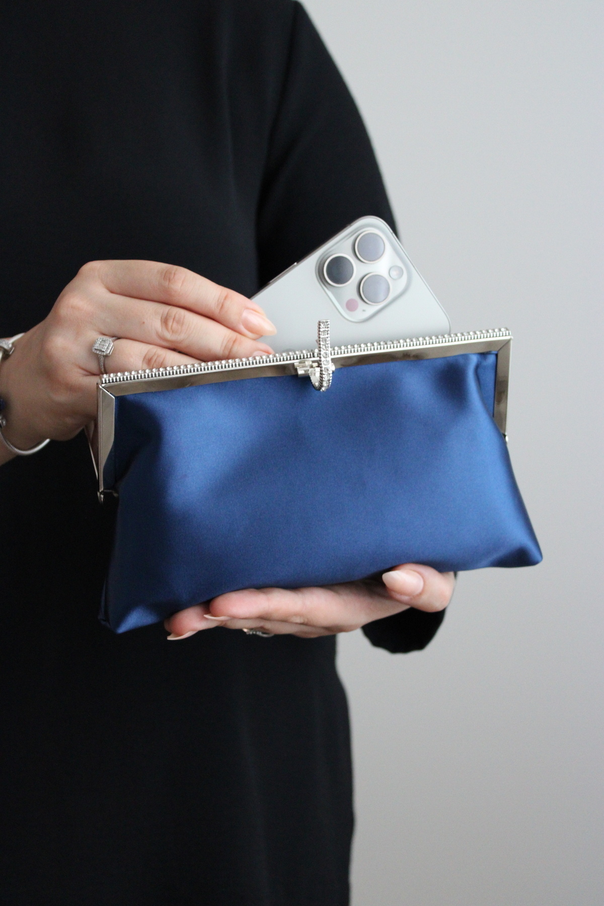Parlak metal çerçevesi ve taş detaylı klips kapamasıyla göz alıcı bir duruş sunarken, iç hacmiyle ihtiyacınız olan tüm küçük eşyaları güvenle taşımanızı sağlar.