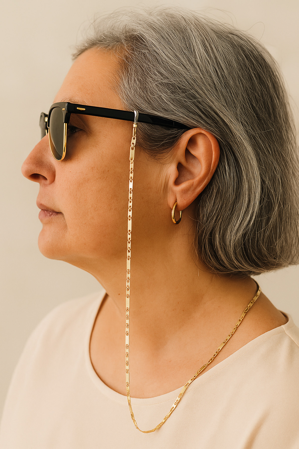 - Altın rengi ile şıklığı ve zarafeti bir arada sunan çelik gözlük ipi, hem kadınların hem de erkeklerin kullanımına uygun olarak tasarlanmıştır.