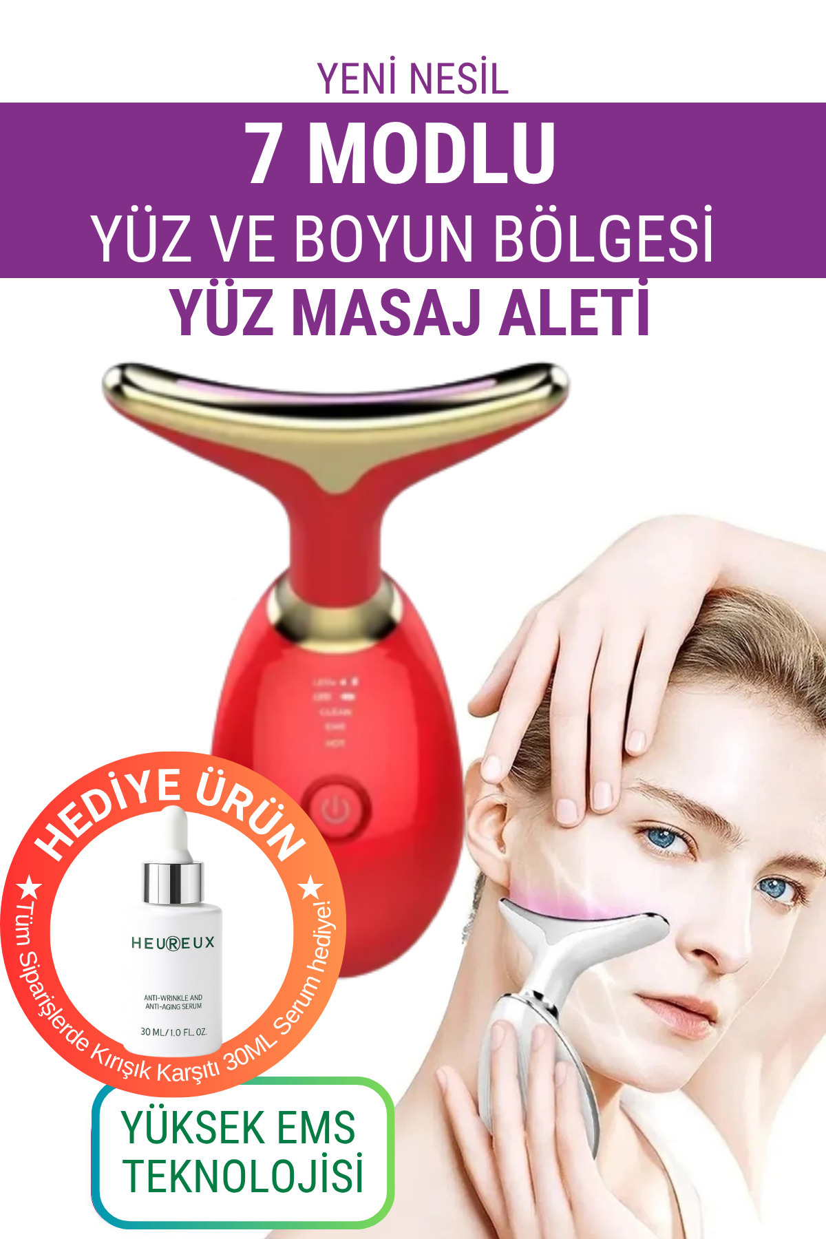 - Yüz ve boyun bölgesine özel olarak tasarlanmış, 7 farklı modda çalışan EMS güzellik cihazı ile sıkılaştırma ve gençleştirme etkisi sağlar.