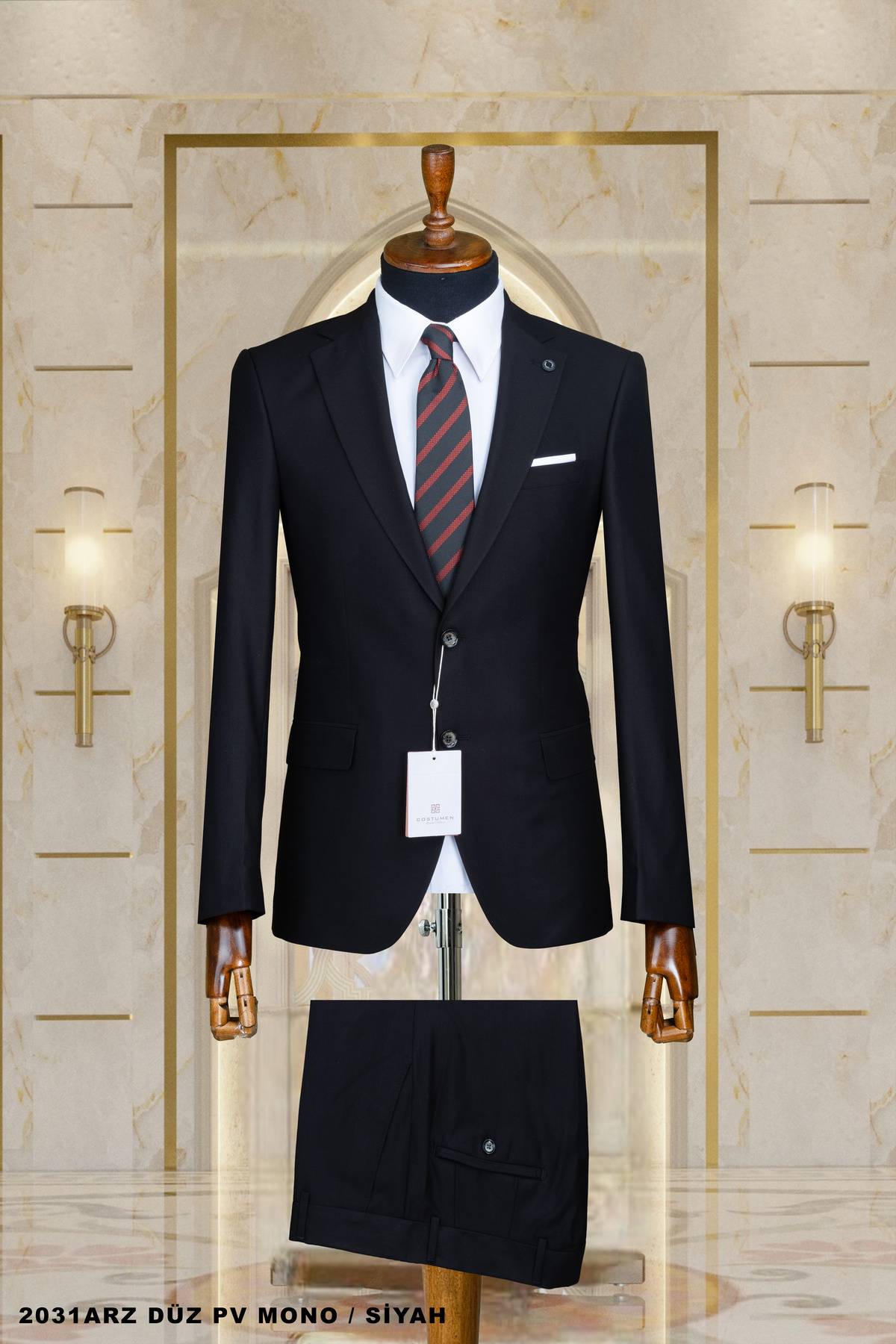 - Zarif siyah rengiyle her ortamda dikkat çeken slim fit takım elbise, şıklığınızı ön plana çıkarır.