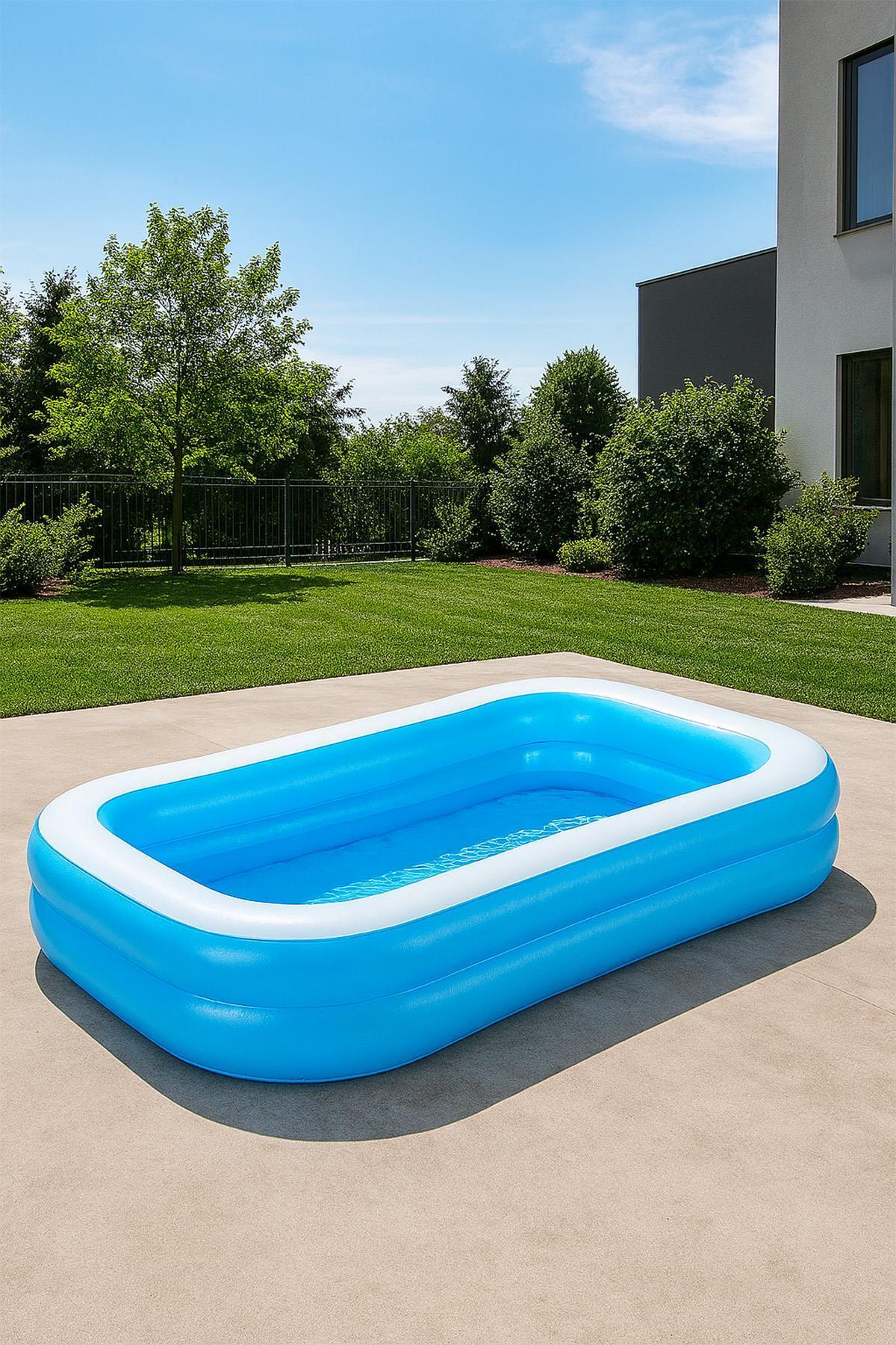 ÖZELLİKLER Materyali: Vinil plastik Renk: Mavi, Beyaz Ebat: 262 x 175 x 51cm Kullanım alanları: Delici ve yakıcı madde bulunmayan her yerde kullanılabilir Diğer özellikler:Halkalı, özel plastik ambalajında 1 adet Aile havuzu Su kapasitesi:%75 doluluk oranında 982lt.