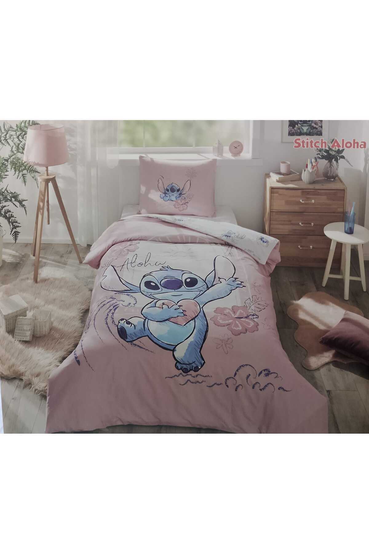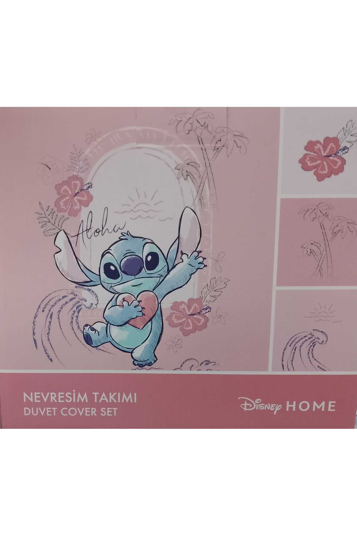 Tek Kişilik Disney Lisanslı Lastikli Çarşaf Çocuk Nevresim Takımı Stitch Aloha Mint