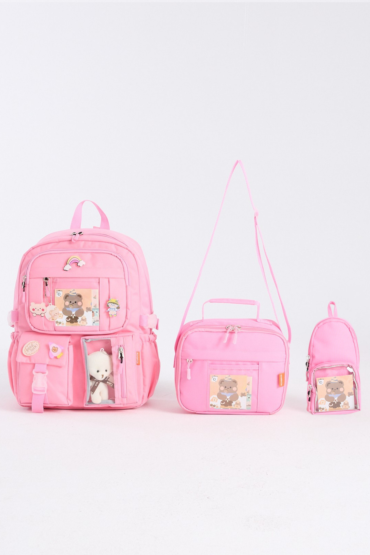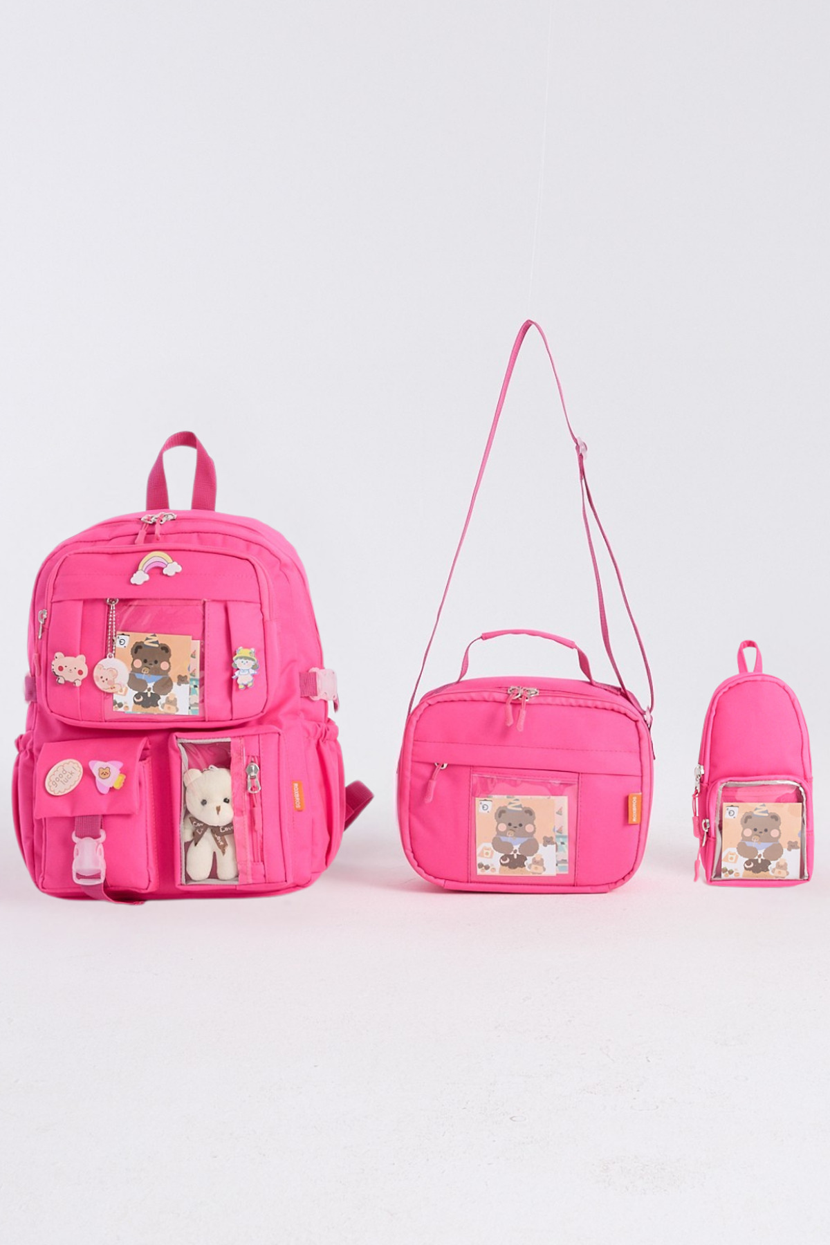 Uyumlu Tasarım: Sırt çantası ile aynı tasarıma ve sevimli ön ceplere sahiptir, tam bir uyum içindedir.
