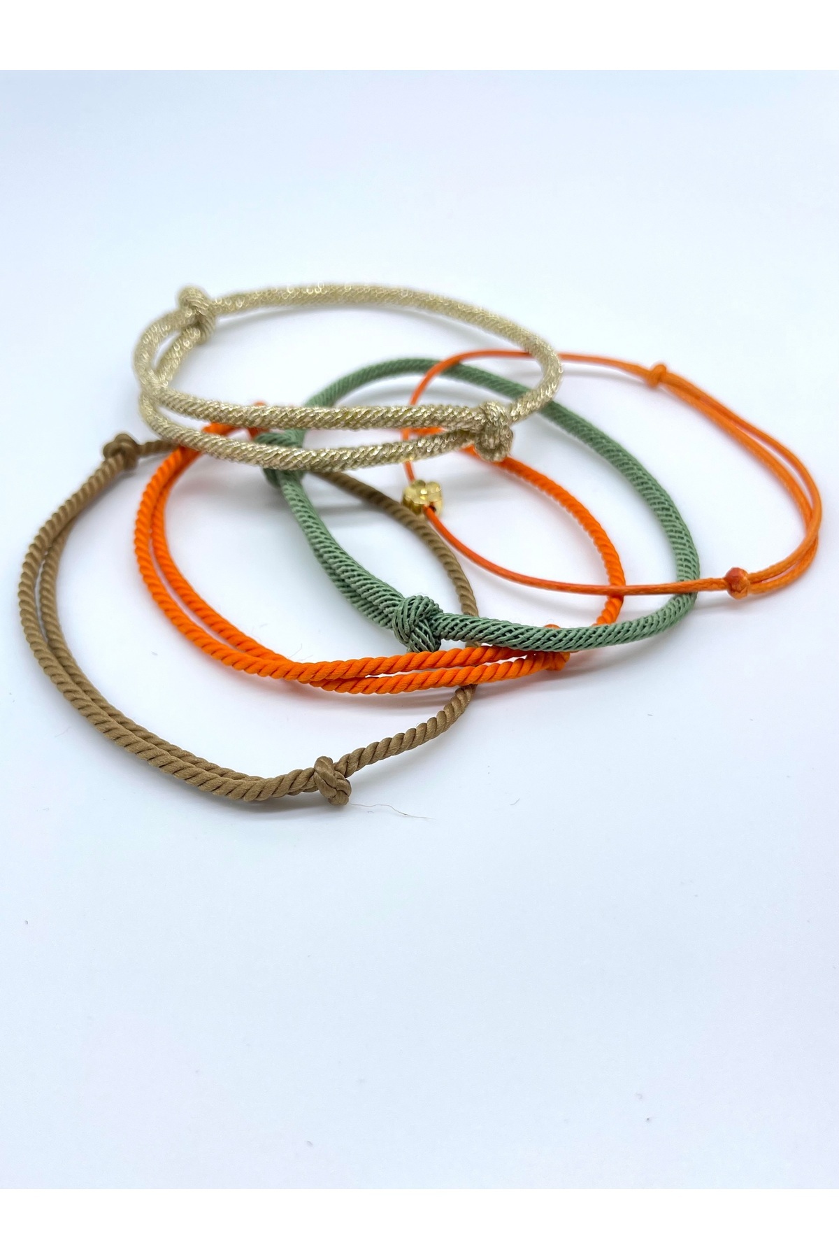 5 adet yaklaşık 40cm (35/42 no ayaktan geçebilecek ve her bilek kalınlığında ayarlanabilir) 1 mm kore 1,5 mm burgulu ve 2,5 mm yeşil ve gold simli Paracord ipten hazırlanmış baharlık ve yazlık kombinlere eşlik edip şıklığınızı tamamlayacak minimal kaydırma kilitli (sallantısız) Halhal seti.