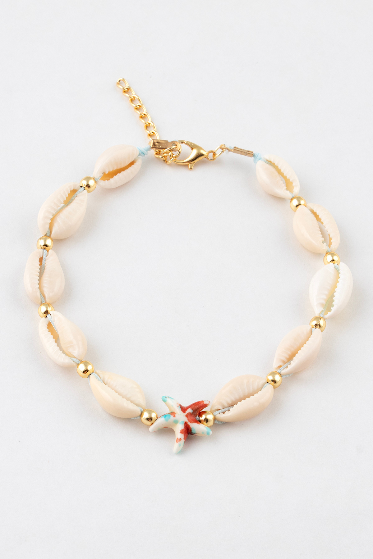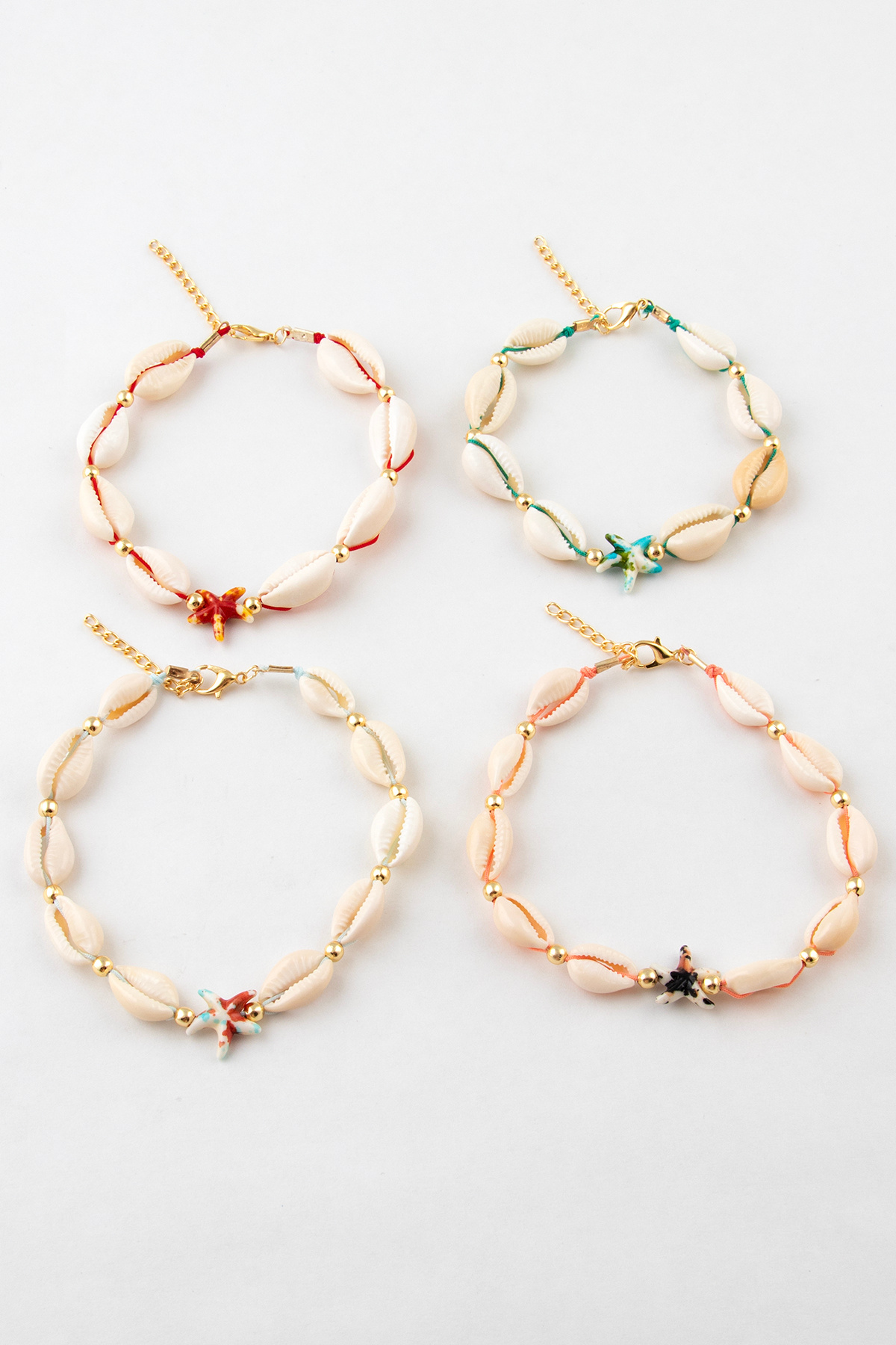 Renkli Deniz Yıldızı Figürlü Deniz Kabuklu İpli Halhal