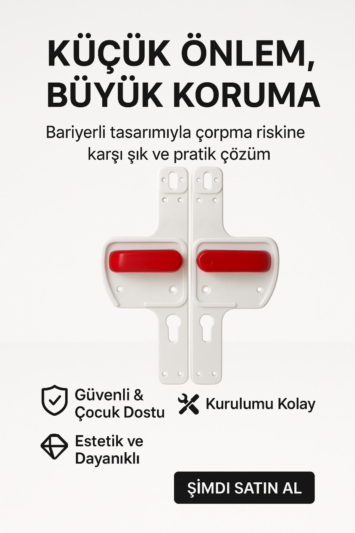 Standart kapı kolları, çıkıntılı ve sert yapıları nedeniyle çocukların baş ve yüz hizasında çarpma riskine yol açabilir.