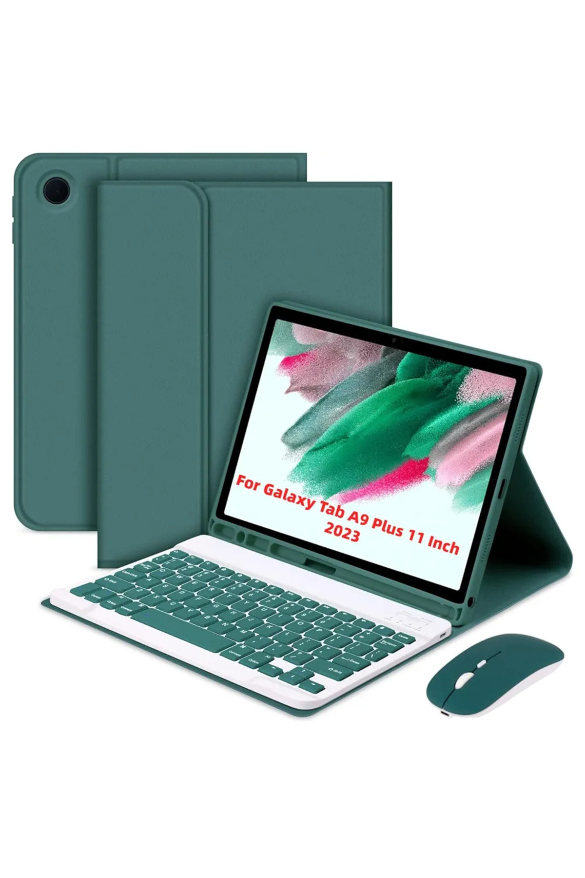 Samsung Galaxy Tab A11 Plus/A9+ Plus 11 inç 2025 Uyumlu Bluetooth Klavyeli Kılıfı + Mouse