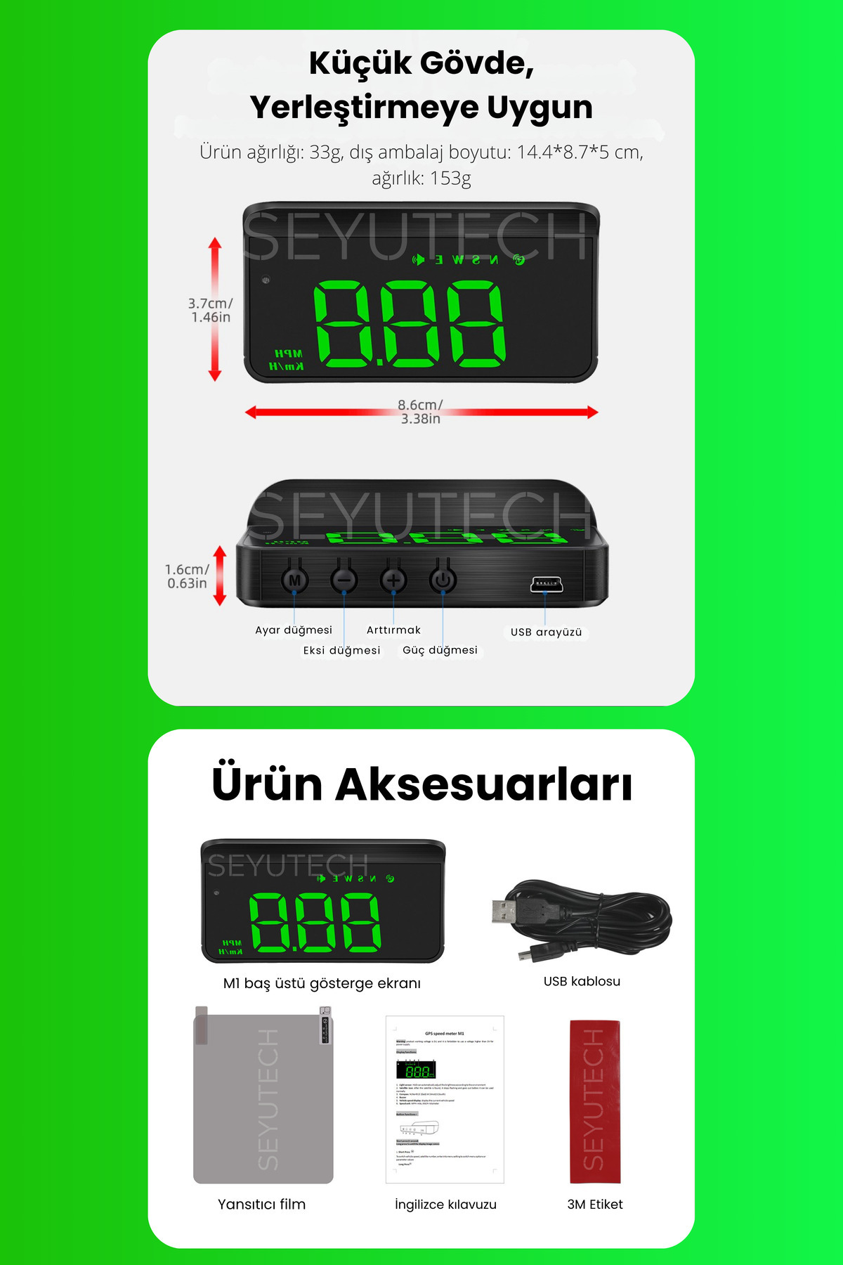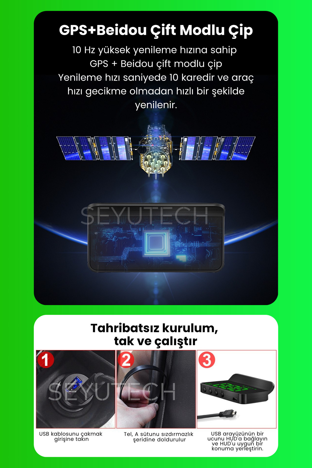 M1 Hud Hayalet Hız Göstergesi Display 2 Farklı Alarmlı GPS ve Pusula Hız Devir Gösterge Ekranı
