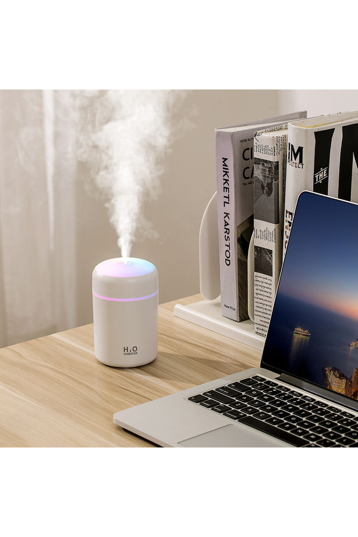 H2O 300ml Renkli Işıklı Ultrasonik Buhar Makinesi Mini Hava Nemlendirici Ev Araba İçin