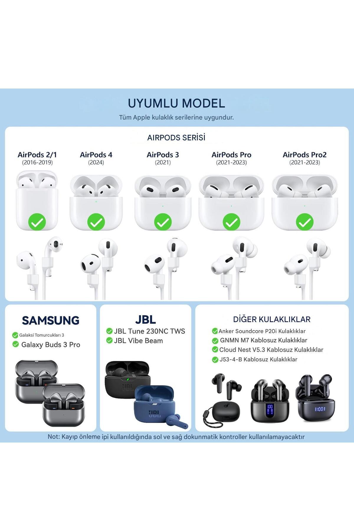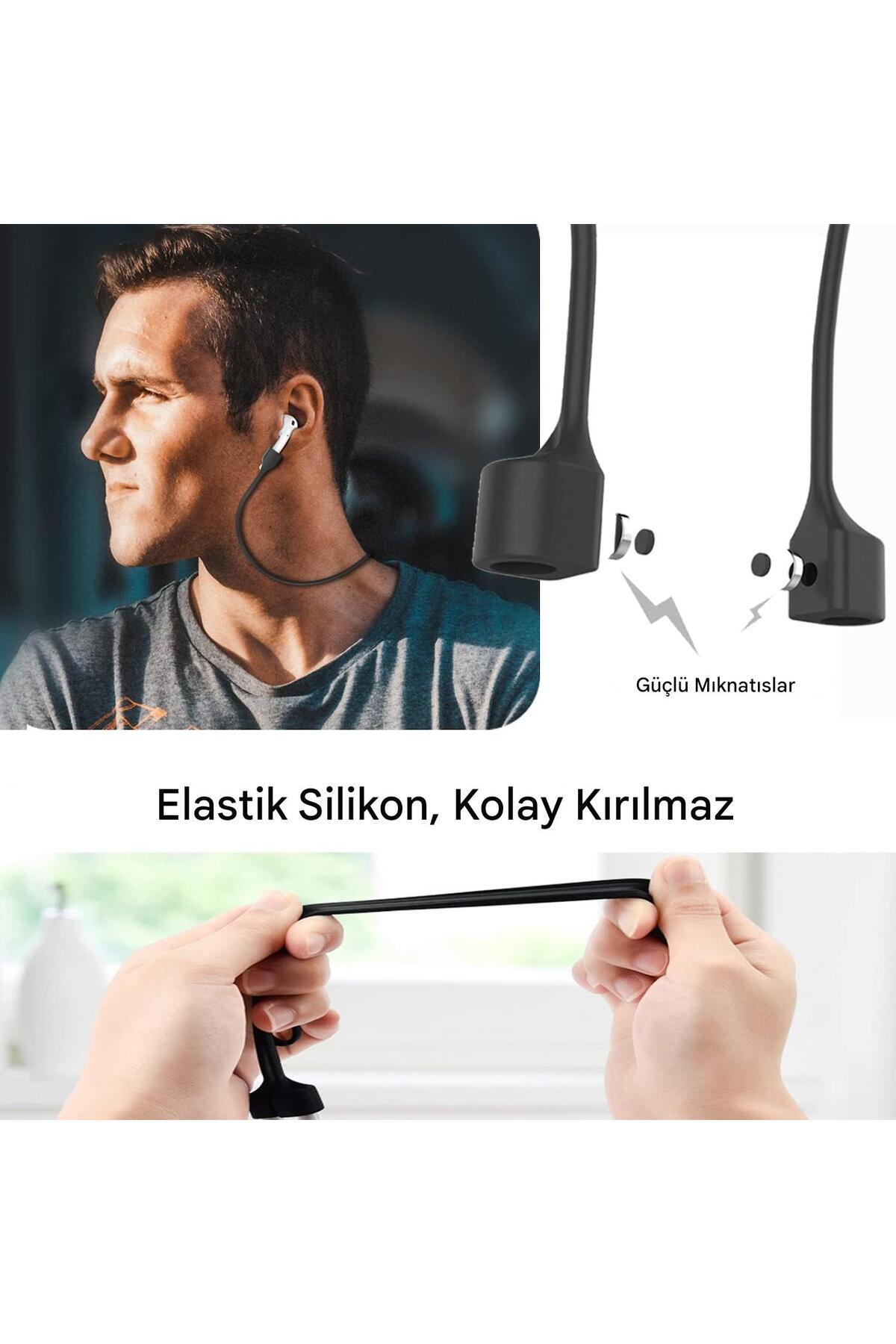 AirPods 1 , 2 , 3 , 4 için Ultra Güçlü Manyetik Boyun Askısı Yumuşak Silikon ,Boyun Halatı Kablosu