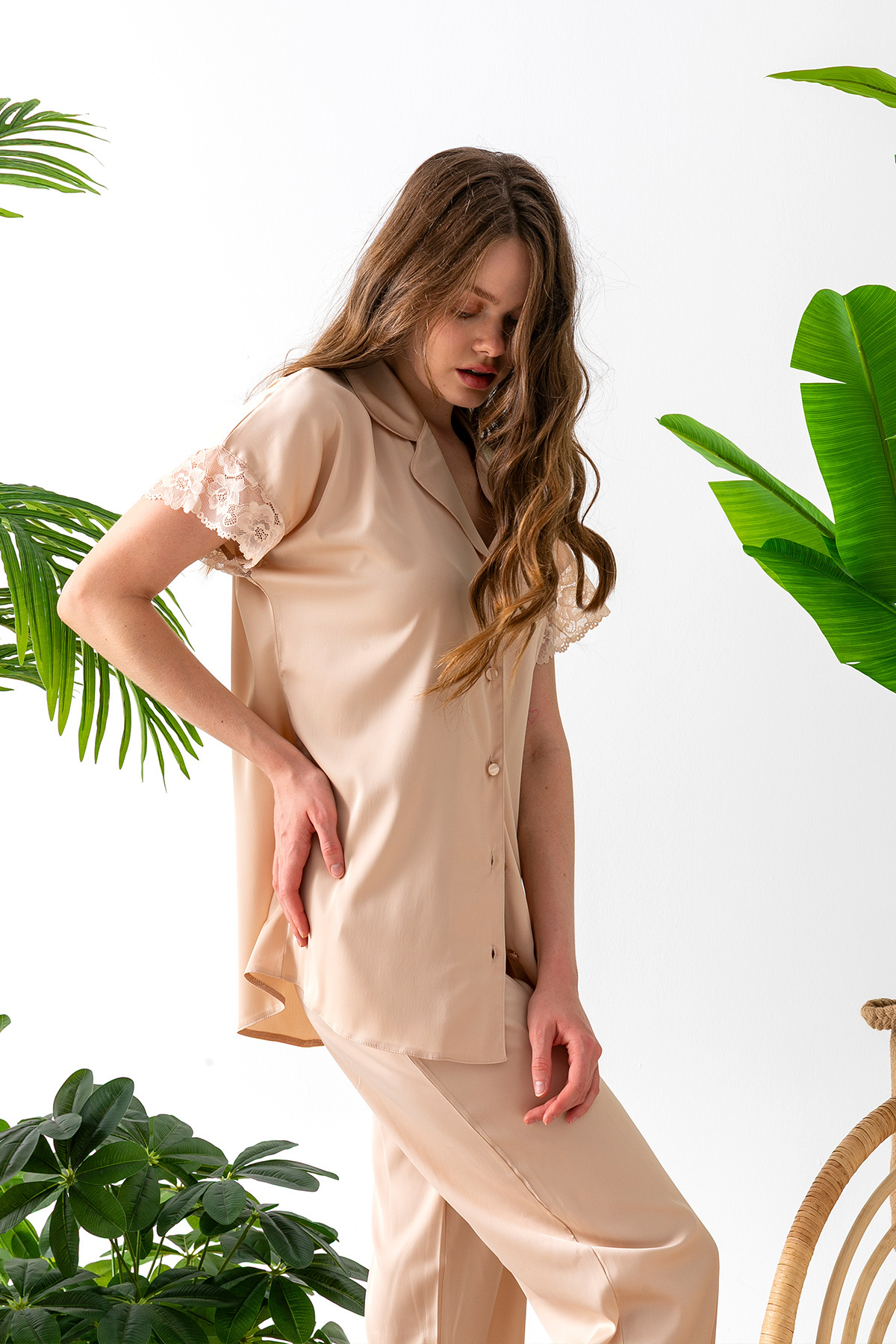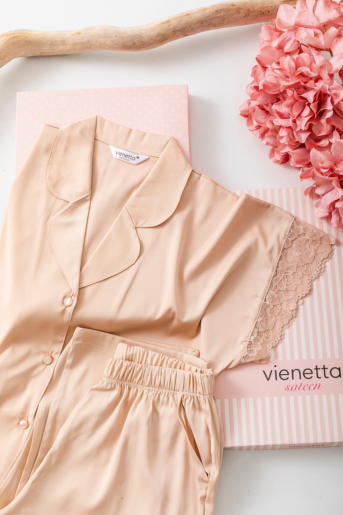 - Dantel detayları ile şıklığı ve zarafeti ev giyimine taşır.