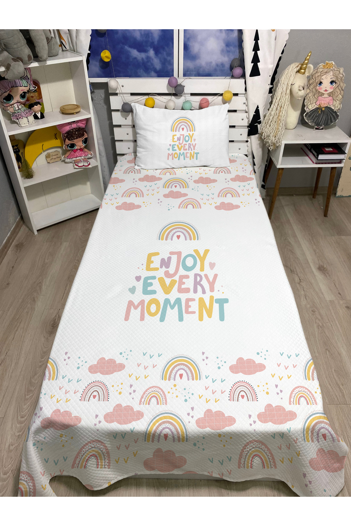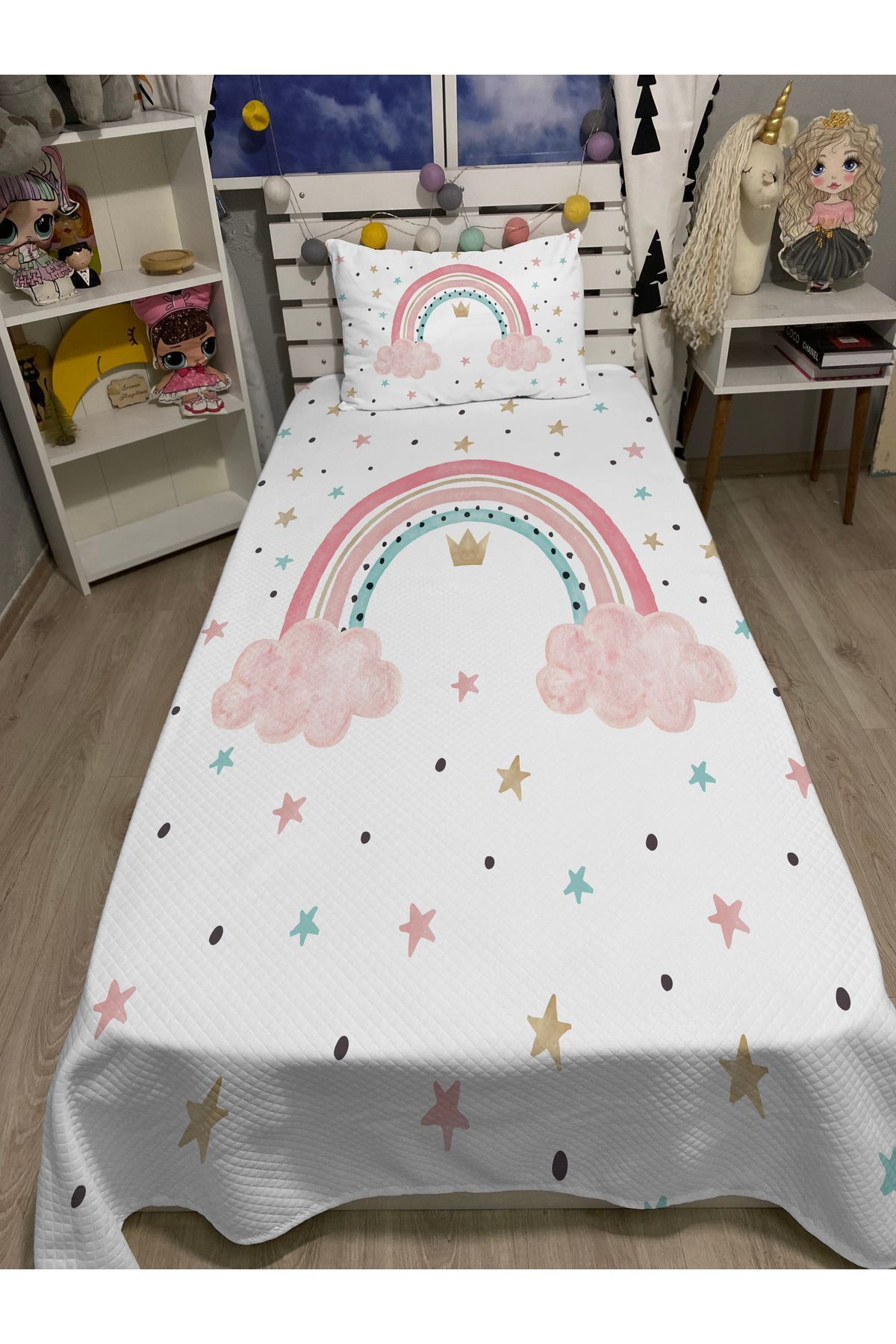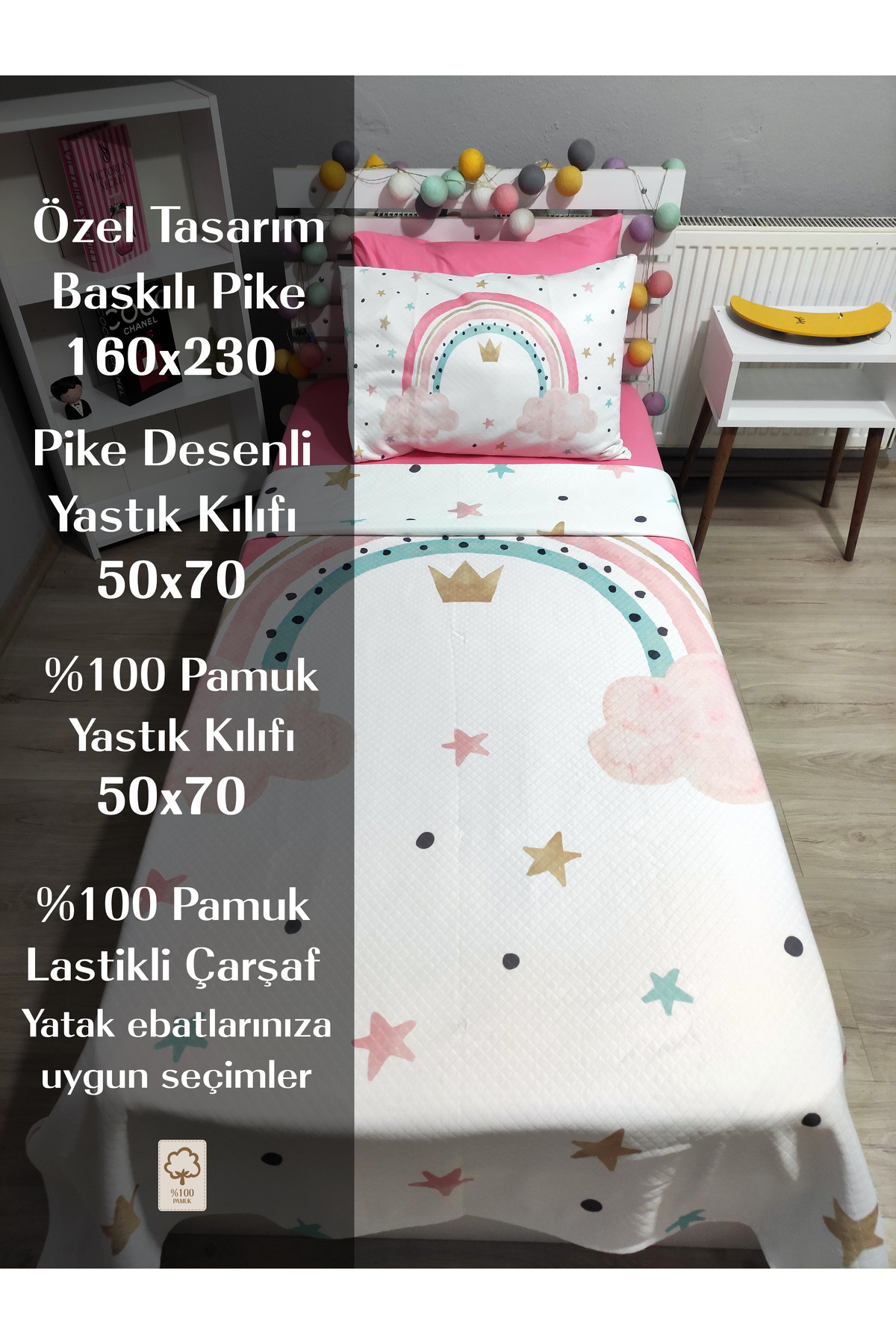 4 parça GÖKKUŞAĞI (%100 pamuk 100X200 lastikli çarşaflı)Tek Kişilik Pike yatak örtüsü takımı