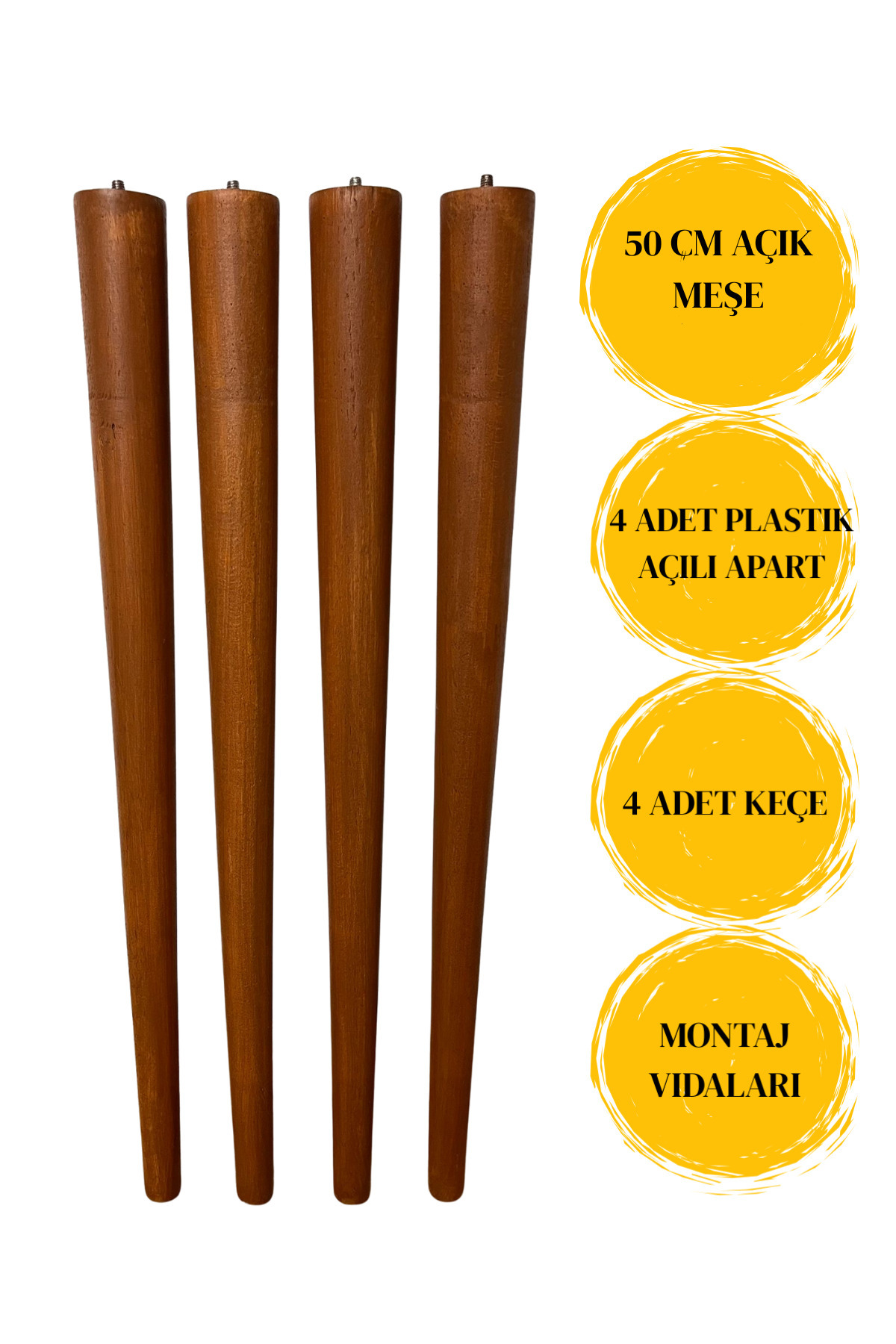 50 Cm Açık Meşe Konik Ayak Ahşap Mobilya Ayağı – 4’lü Set | Masa, Sandalye Ayağı, Sehpa Ayağı
