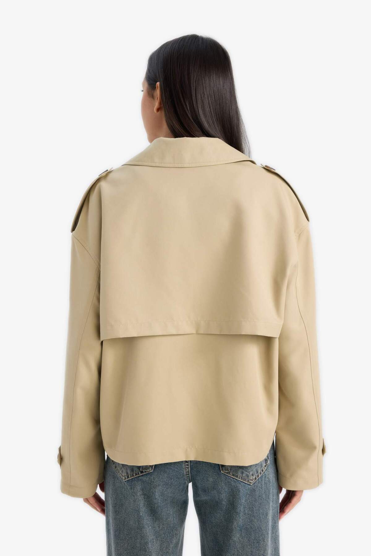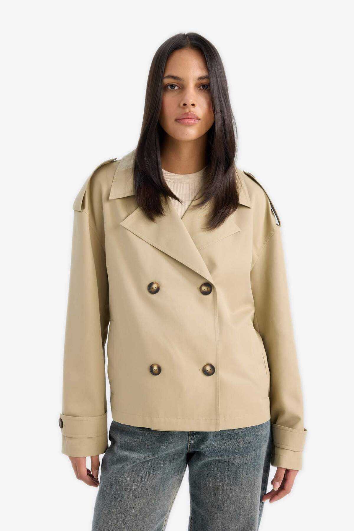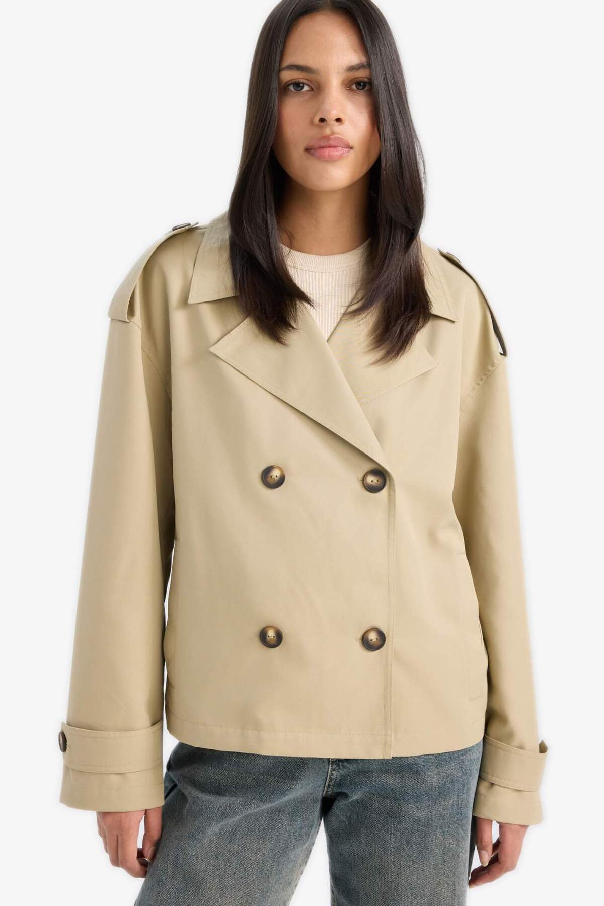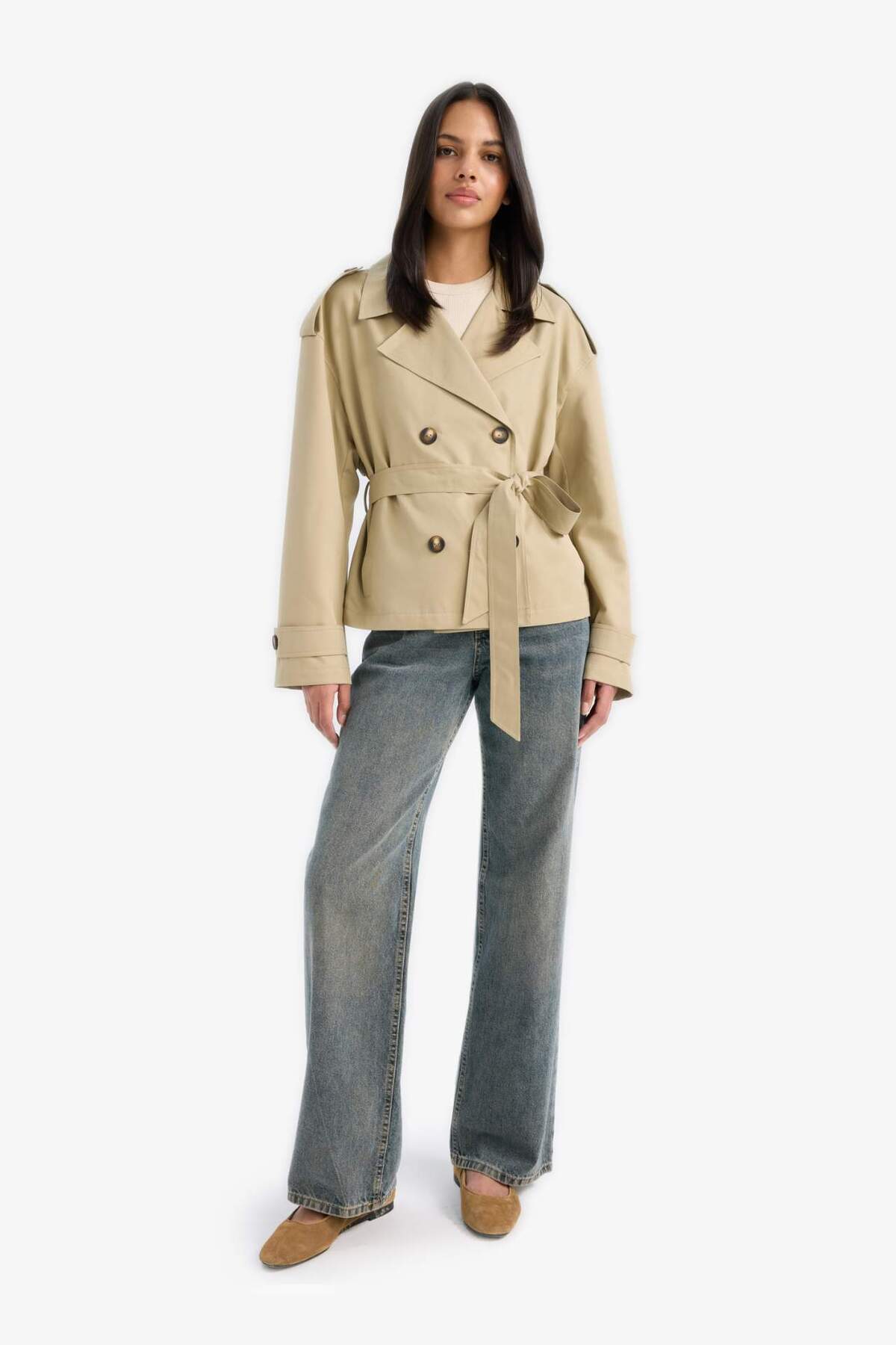Regular Fit Cepli Kemerli Kısa Trençkot, şık kemer detayı ve kullanışlı cepleriyle hem tarz hem fonksiyonellik sunar.
