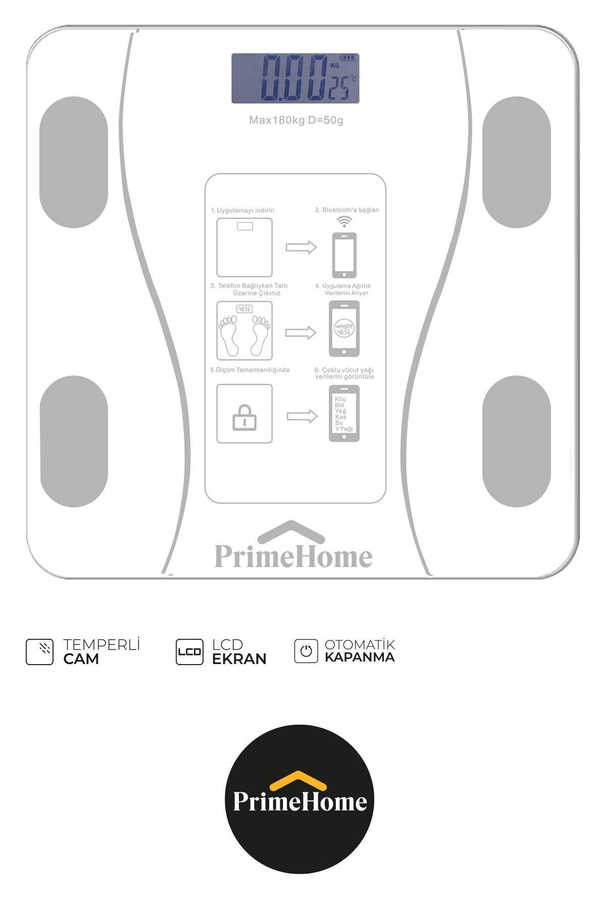 Dijital Baskül Yağ Su Kas Vücut Kitle Endeksi Kilo Ölçer Tartı Beyaz
