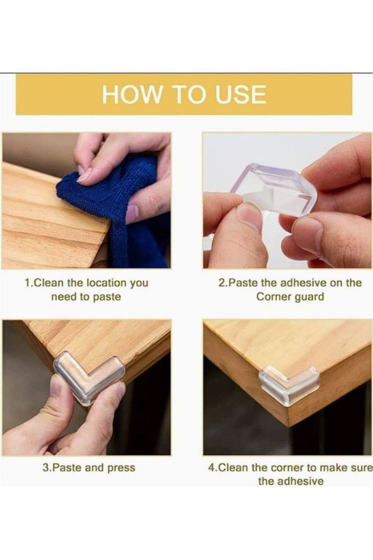 Masa ve Mobilya İçin Şeffaf Köşe Koruyucu – Bebek Güvenliği, Silikon, Yapışkanlı 8 adet